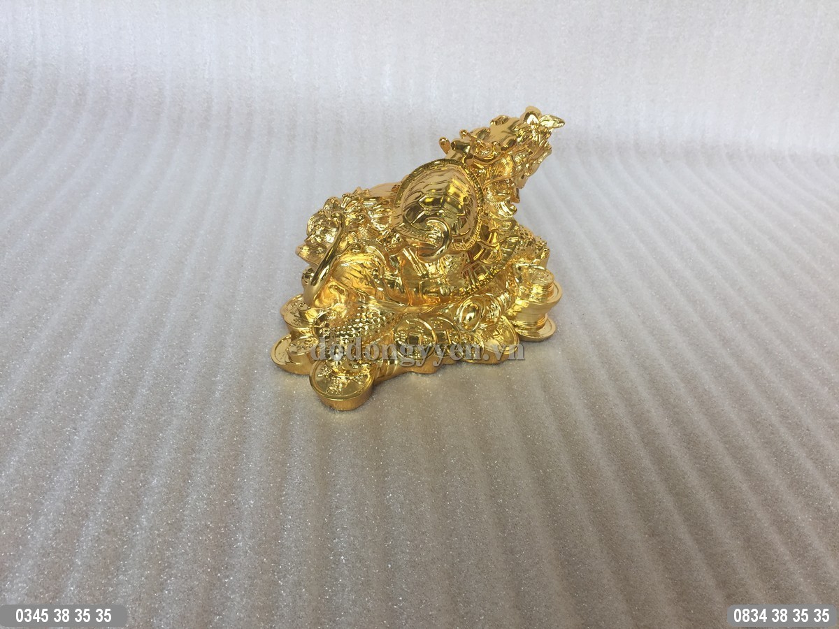 Long Quy cõng con hay còn gọi là Rùa đầu Rồng cõng con được đúc bằng nguyên liệu đồng nguyên chất, sau đó được phủ một lớp vàng ròng 24K trên toàn bộ bề mặt sản phẩm. Tạo hình Long Quy là linh vật Rùa đầu Rồng (Rùa hóa Long) cõng con trên một nền toàn là những đồng tiền vàng, bạc nén. Long Quy Mạ Vàng 24K là sản phẩm đúc đồng cao cấp, độc đáo đem lại may mắn, tài lộc và thăng tiến trong sự nghiệp học tập.
