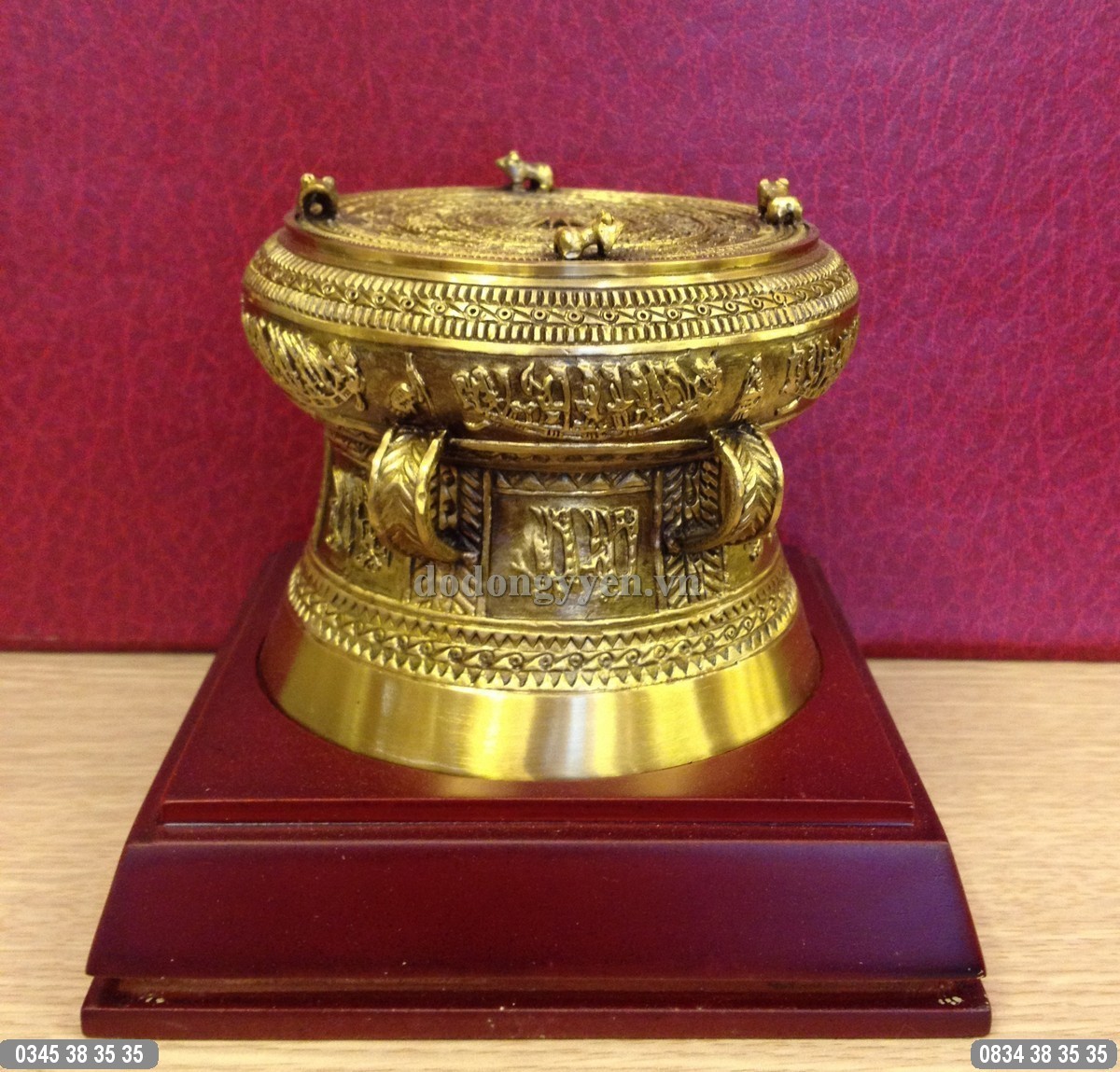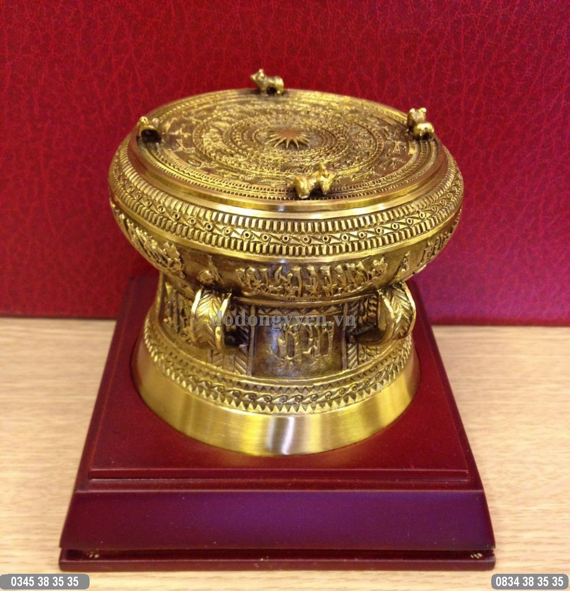 Kích thước: Đường kính 10cm, 12cm, 15cm, 20cm, 30cm, 48cm… Ngoài ra đồ đồng Cường Thịnh nhận đặt Trống đồng mạ vàng theo yêu cầu của Quý khách hàng.