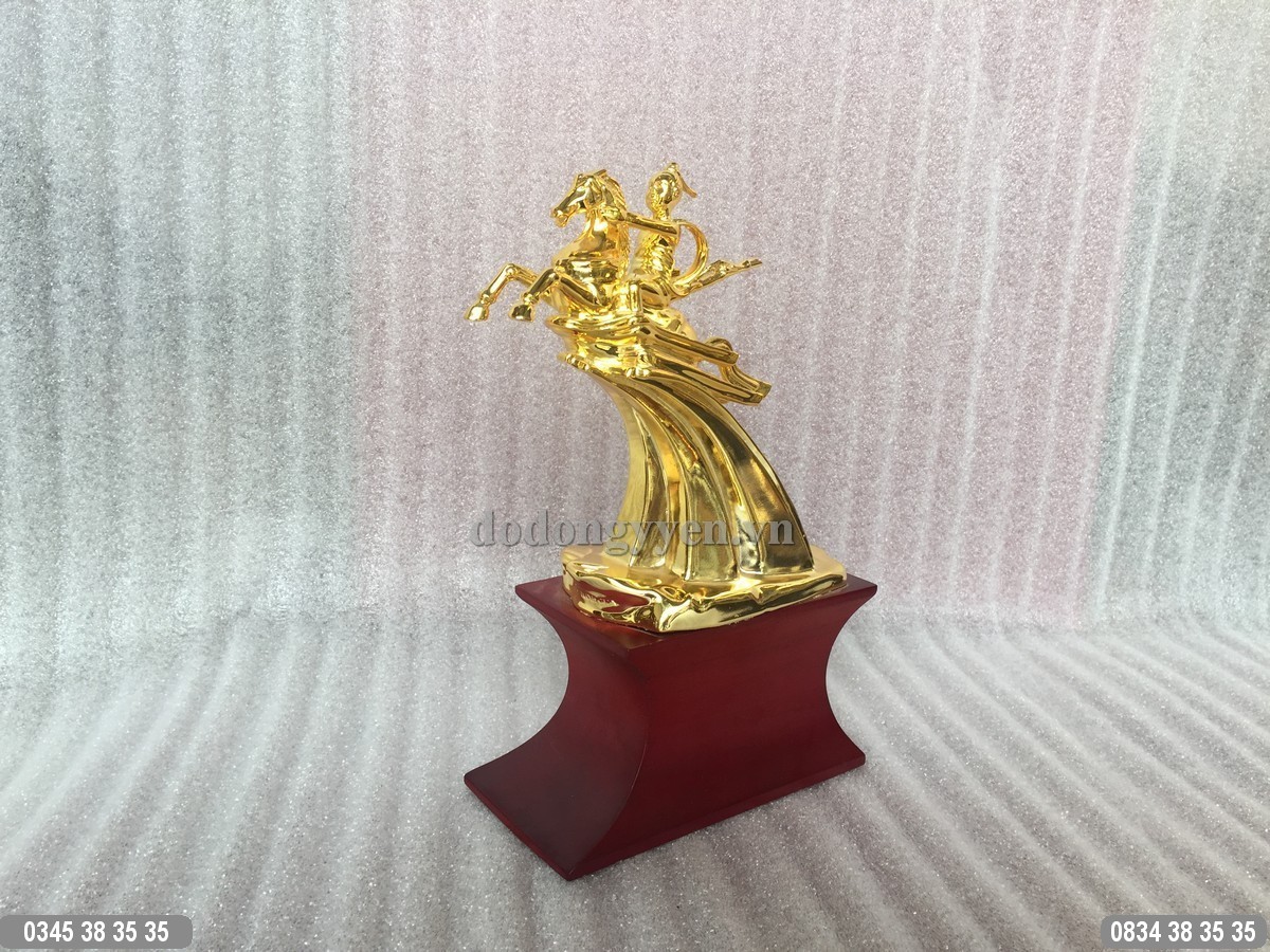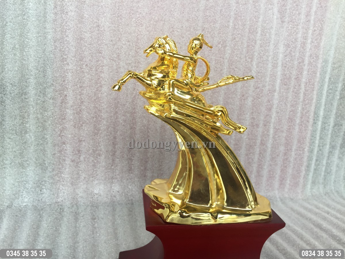 Tượng Thánh Gióng Phù Đổng Thiên Vương đúc bằng nguyên lilệu đồng nguyên chất, phủ vàng ròng 24K trên toàn bộ bề mặt sản phẩm. Tượng có chiều cao 15cm chưa tính đế gỗ, đế gỗ cao 7cm. Tượng Thánh Gióng Mạ Vàng 24K là món quà tặng độc đáo, cao cấp và ý nghĩa dành cho lãnh đạo, công ty, đối tác... Tượng có thể trưng bày ở bàn làm việc, tủ trưng bày, phòng lễ tân...