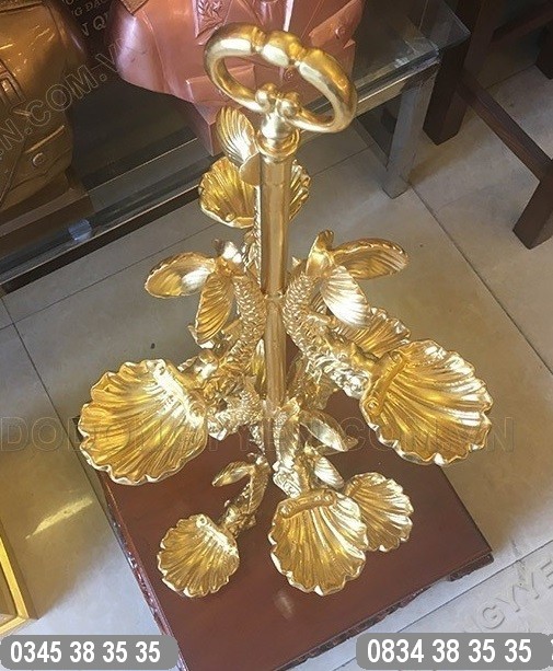 Biểu tượng cửu ngư đuôi sò được đúc theo yêu cầu của khách hàng thuộc dòng sản phẩm hàng đặt cao cấp, dát vàng lá 9999 rất sang trọng và đẳng cấp