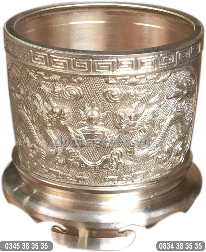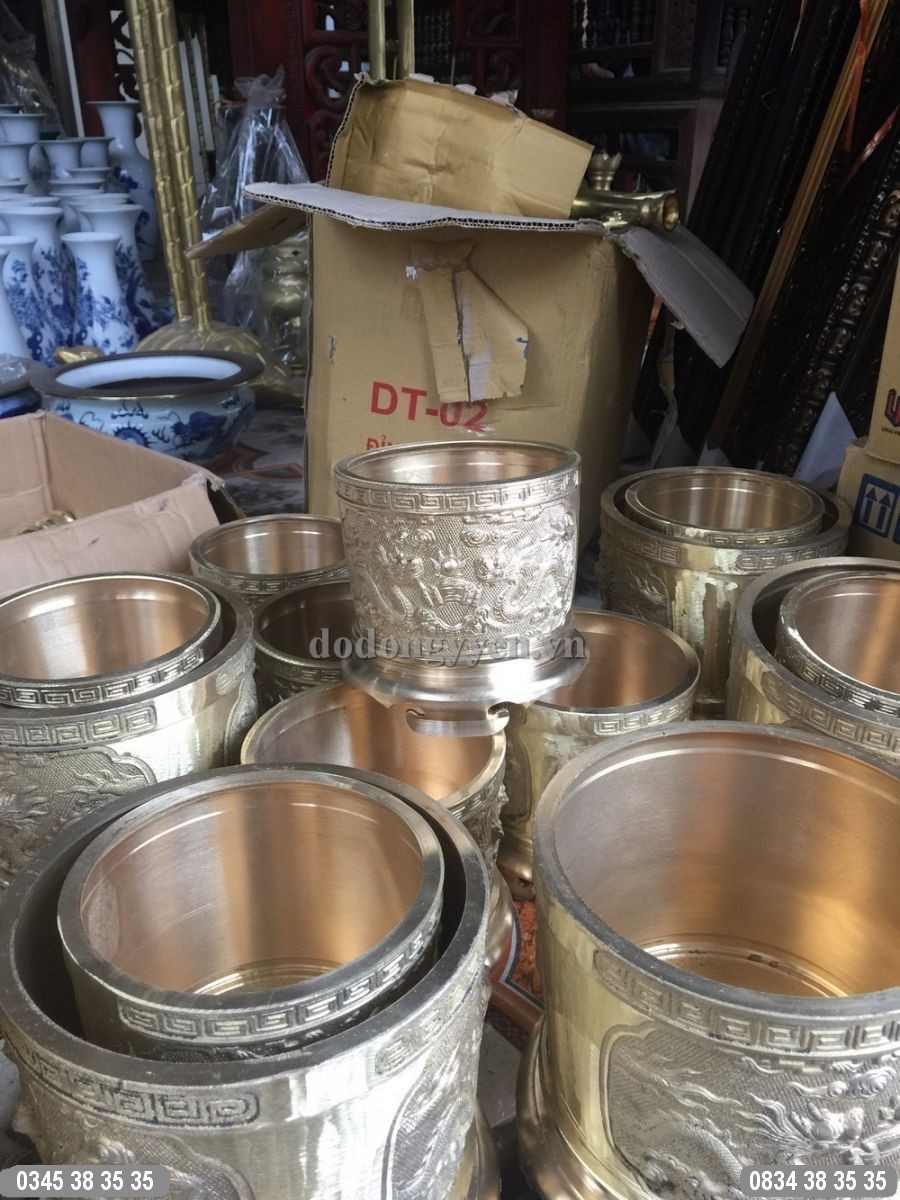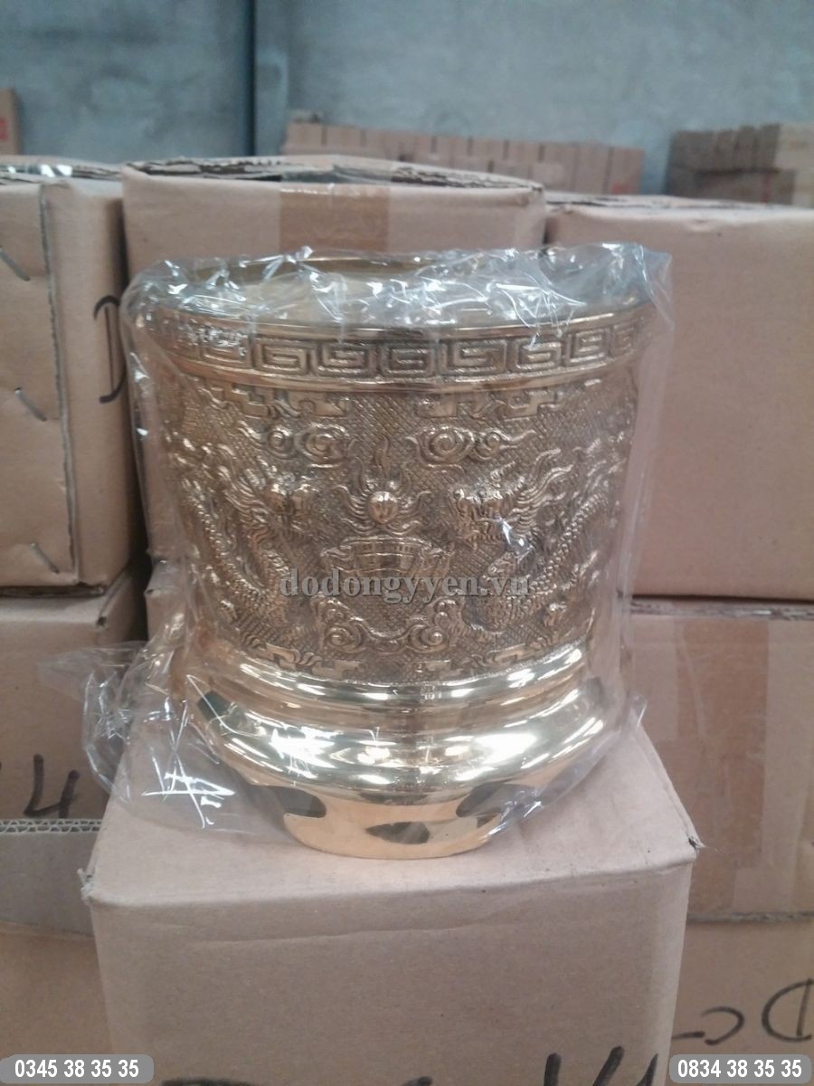 Bát hương đồng vàng thờ thần linh, thờ gia tiên, thổ công. Bát hương đồng vàng thờ cúng gia tiên đúc hình song long chầu nguyệt rất đẹp