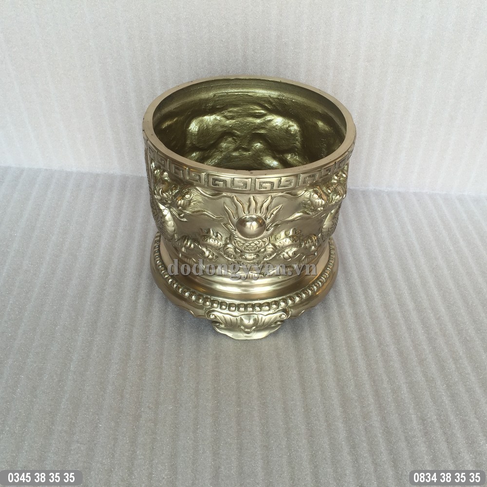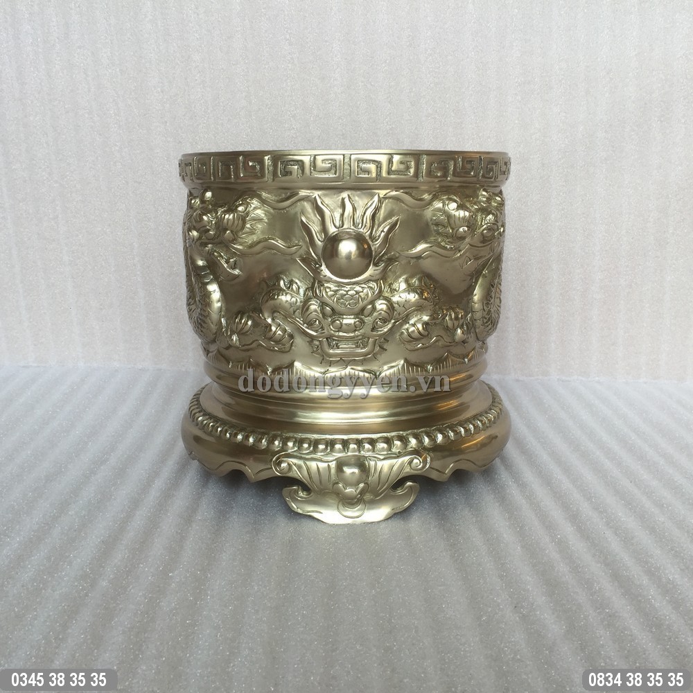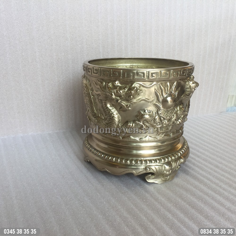 Bát hương đồng đúc rồng nổi lưỡng long chầu nguyệt của Đồ Đồng Cường Thịnh được đúc bằng đồng vàng nguyên khối vô cùng đẹp và sắc nét, vật phẩm được coi như ngôi nhà thứ hai của ông bà gia tiên.