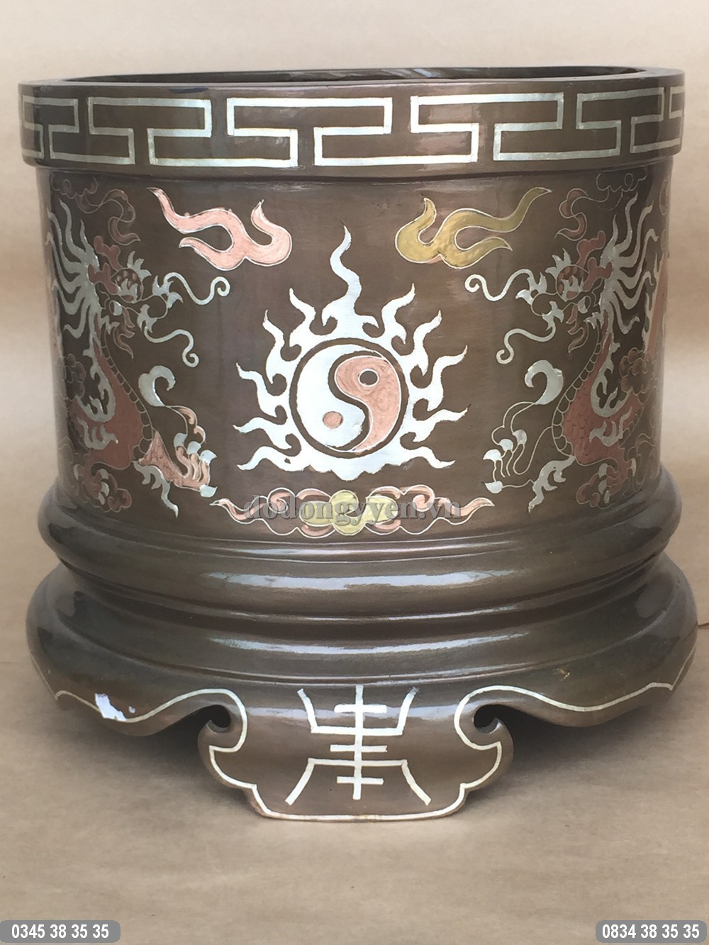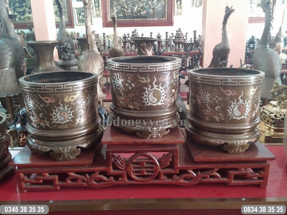 Bát hương đồng đỏ khảm tam khí