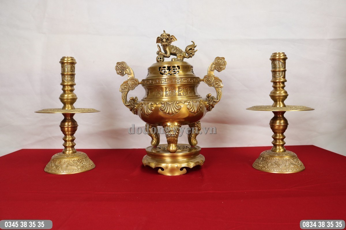 Ngoài ra có thể chọn đôi chân nến bằng đồng cùng với đỉnh đồng thành bộ tam sự