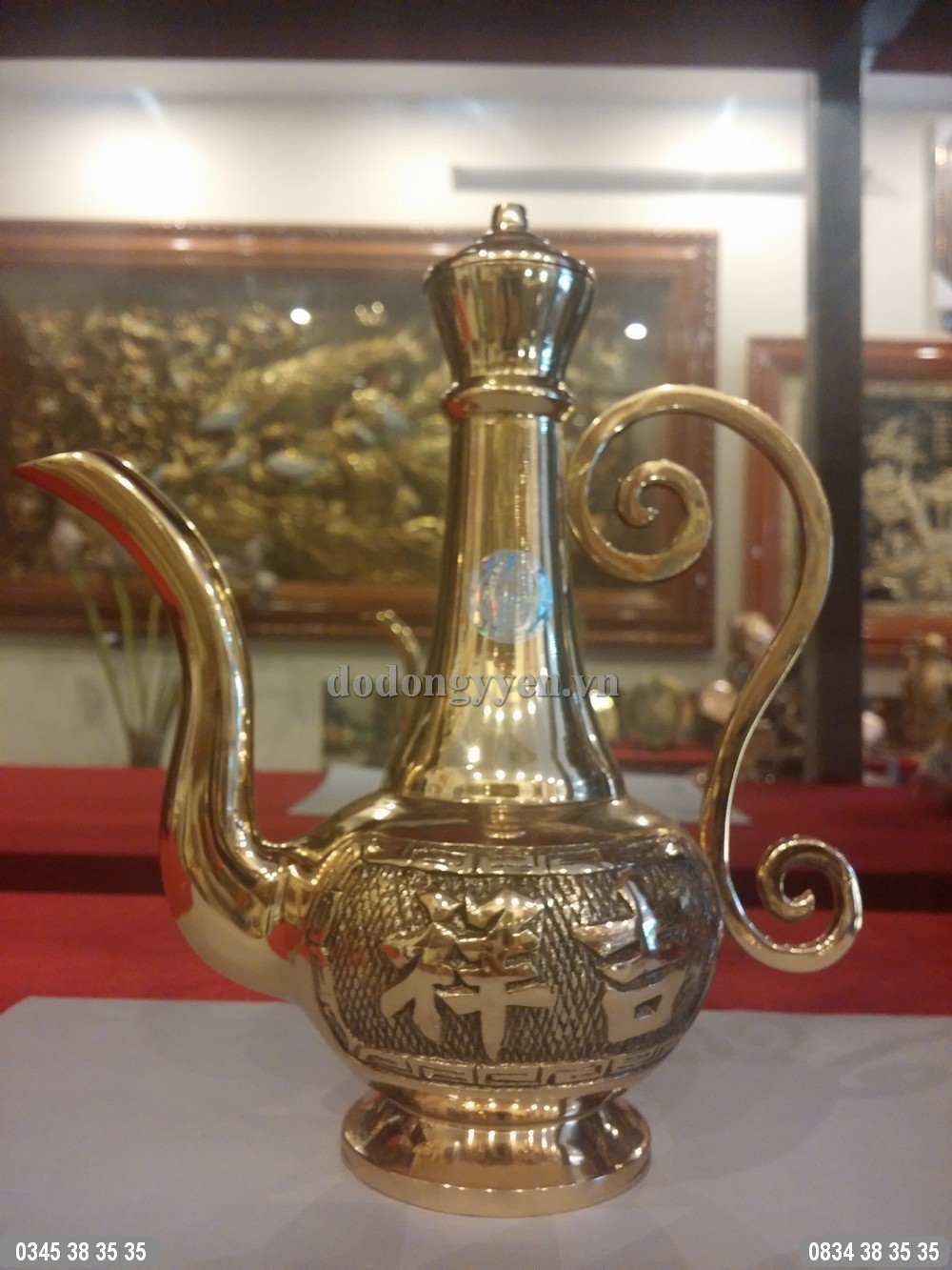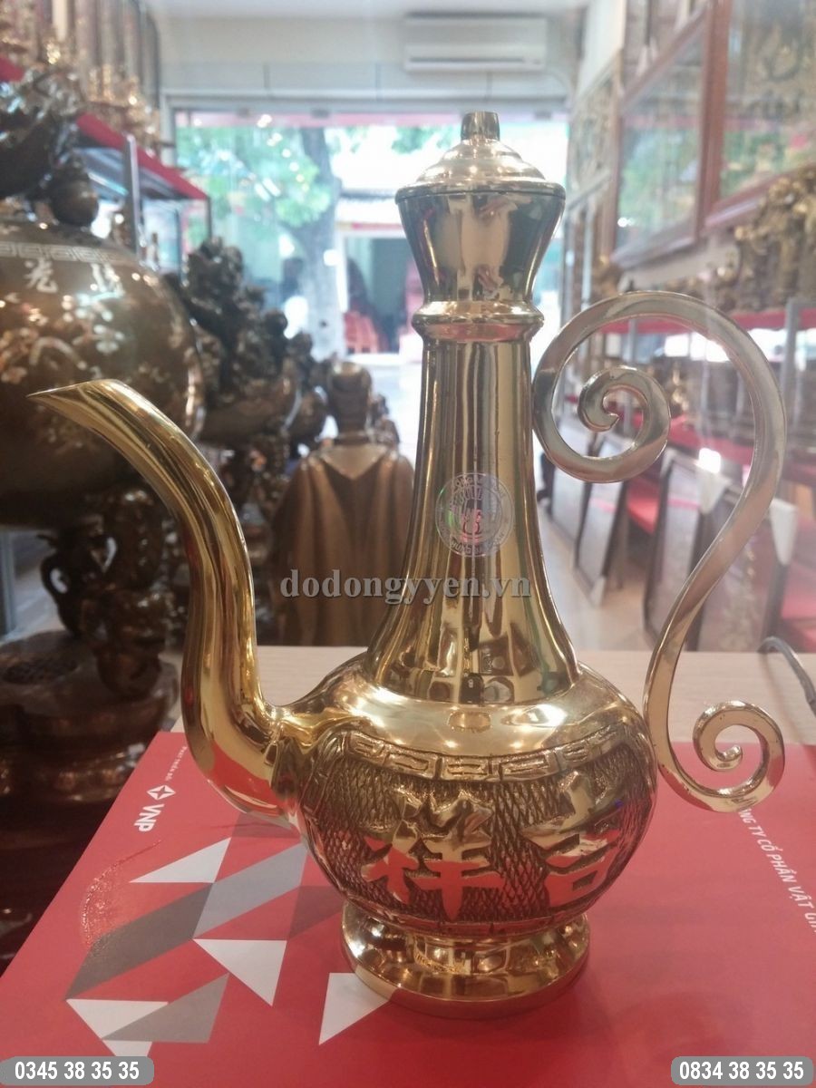 Bình đựng rượu bằng đồng dùng cho việc thờ cúng, đựng rượu thờ hoặc nước thờ được bày chung với các bộ ngai khay chén thờ bằng đồng