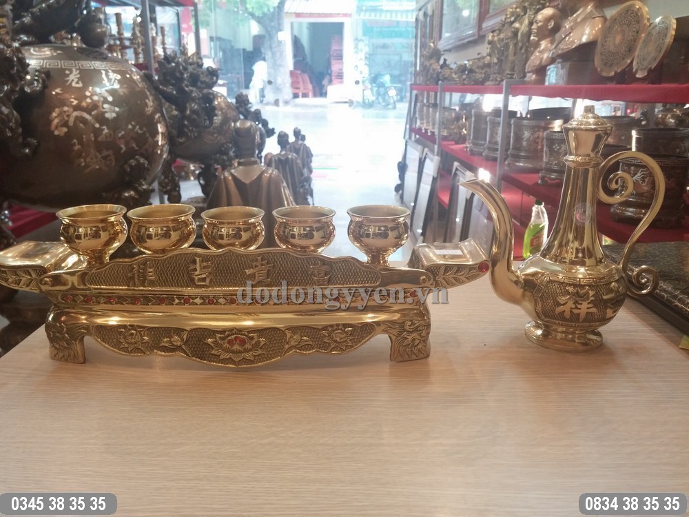Bình đựng rượu thờ cúng được đúc từ đồng vàng của Đồ Đồng Cường Thịnh là vật phẩm thờ cúng vô cùng quan trọng trên ban thờ gia tiên, mang lại vẻ đẹp sang trọng, tinh tế cho không gian thờ cúng nhà gia chủ.