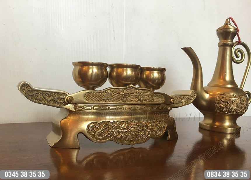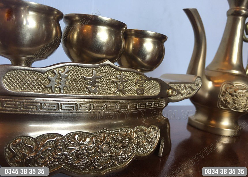 Bộ ấm chén bằng đồng vàng của Đồ Đồng Cường Thịnh được làm hoàn toàn thủ công bởi đôi bàn tay tài hoa của các nghệ nhân, thợ thủ công có nhiều năm kinh nghiệm.