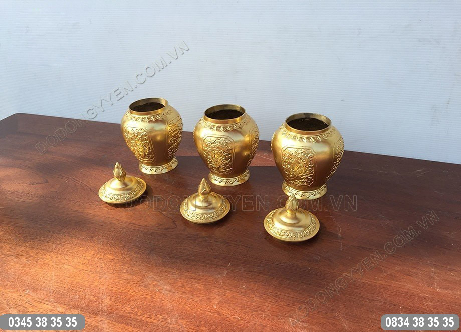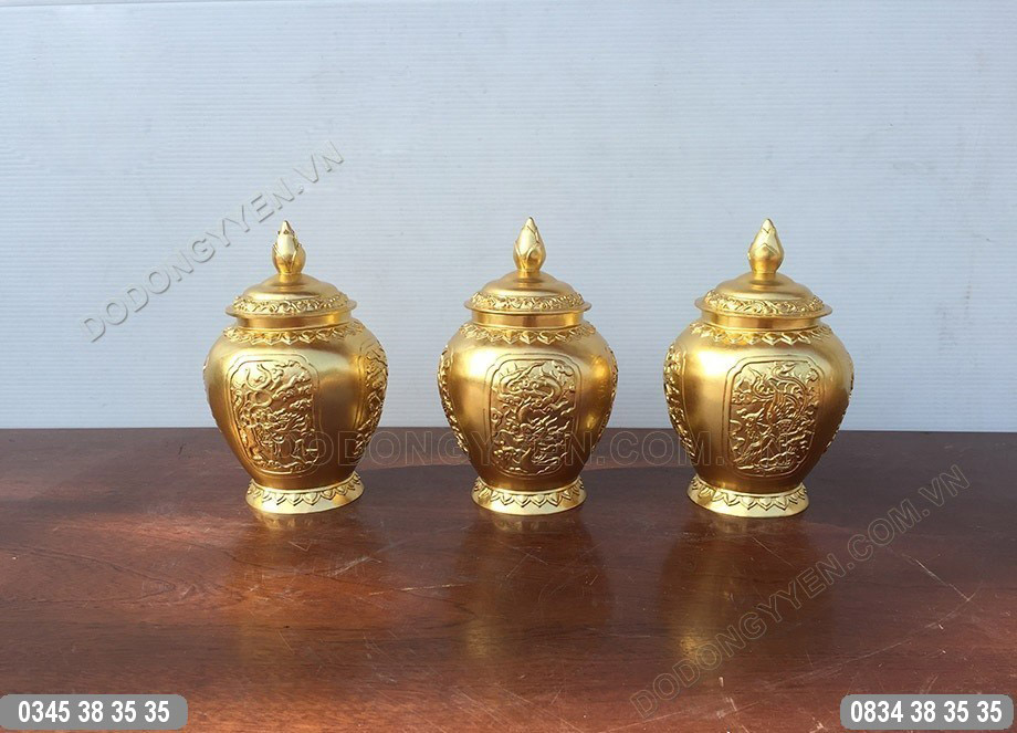 Bộ Chóe Đồng gồm ba chiếc của Đồ Đồng Cường Thịnh thường được các gia chủ dùng để đựng nước, gạo, muối dâng lên ông bà tổ tiên vào ngày rằm, mùng một,.. hay lễ tết.