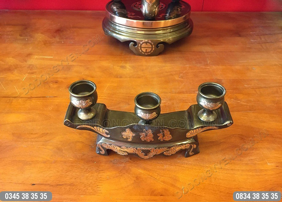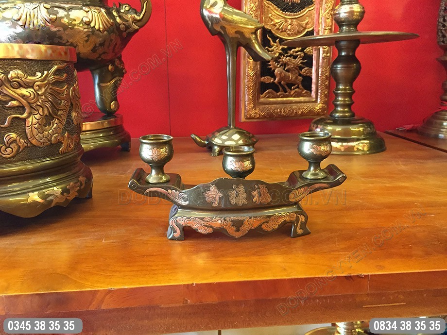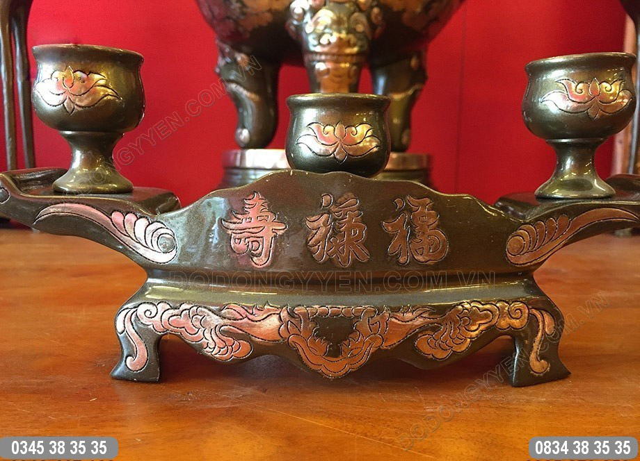Bộ khay chén thờ cúng đúc thủ công bằng đồng đỏ