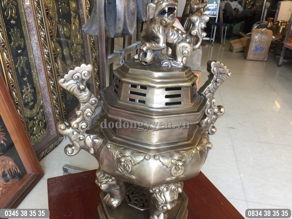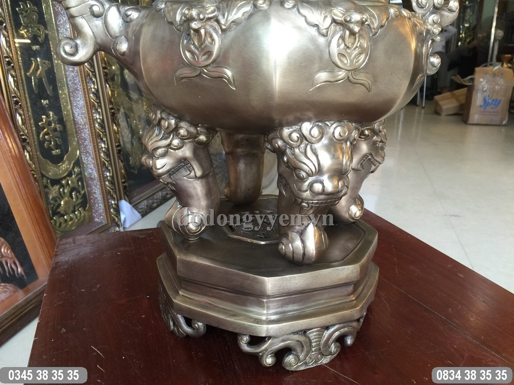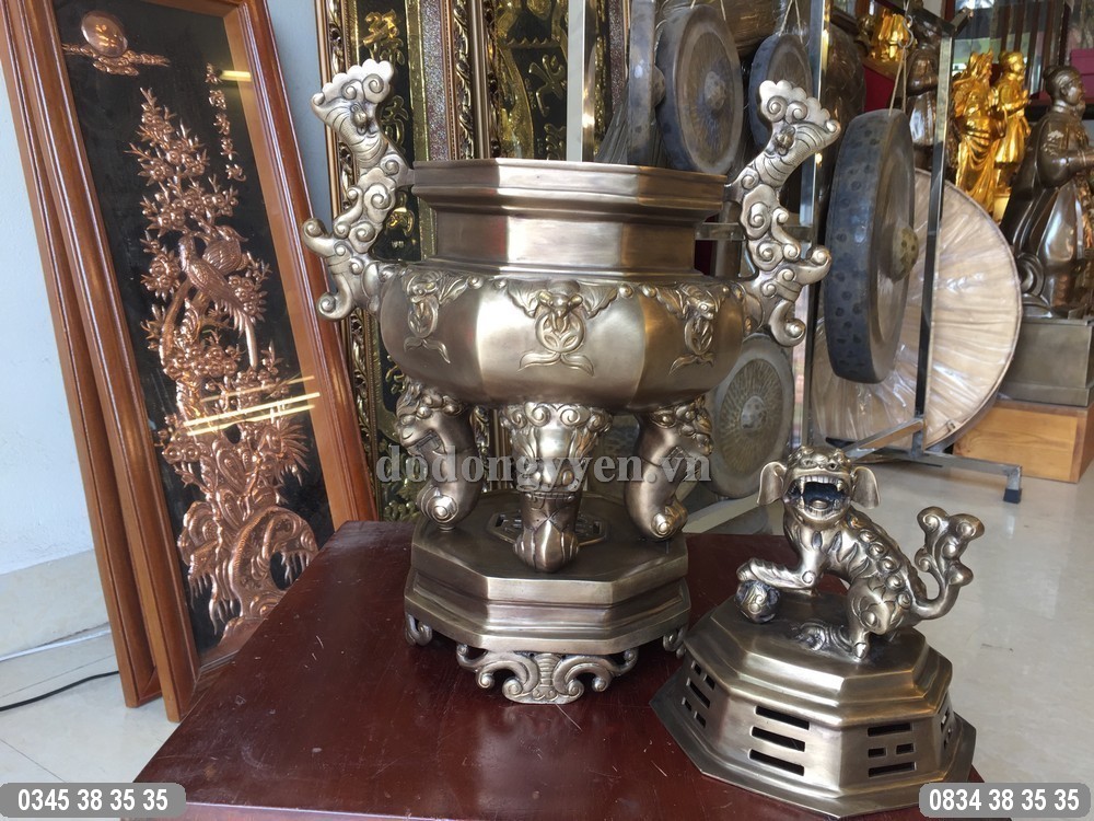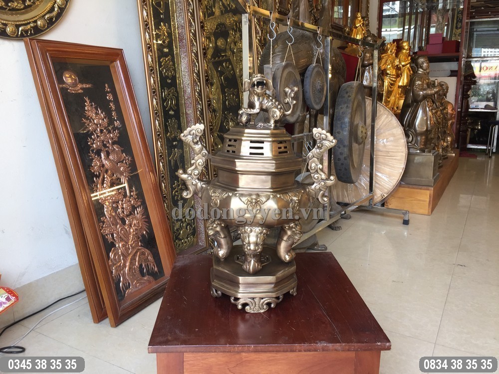 Đỉnh đồng Bát Giác được đúc bằng đồng nguyên chất theo phương pháp thủ công truyền thống. Đỉnh được đúc dày dặn, gia công tinh xảo, công phu sau đó xuống màu hun giả cổ rất đẹp