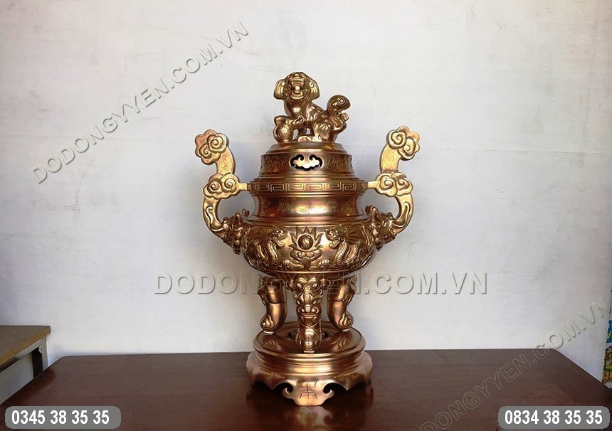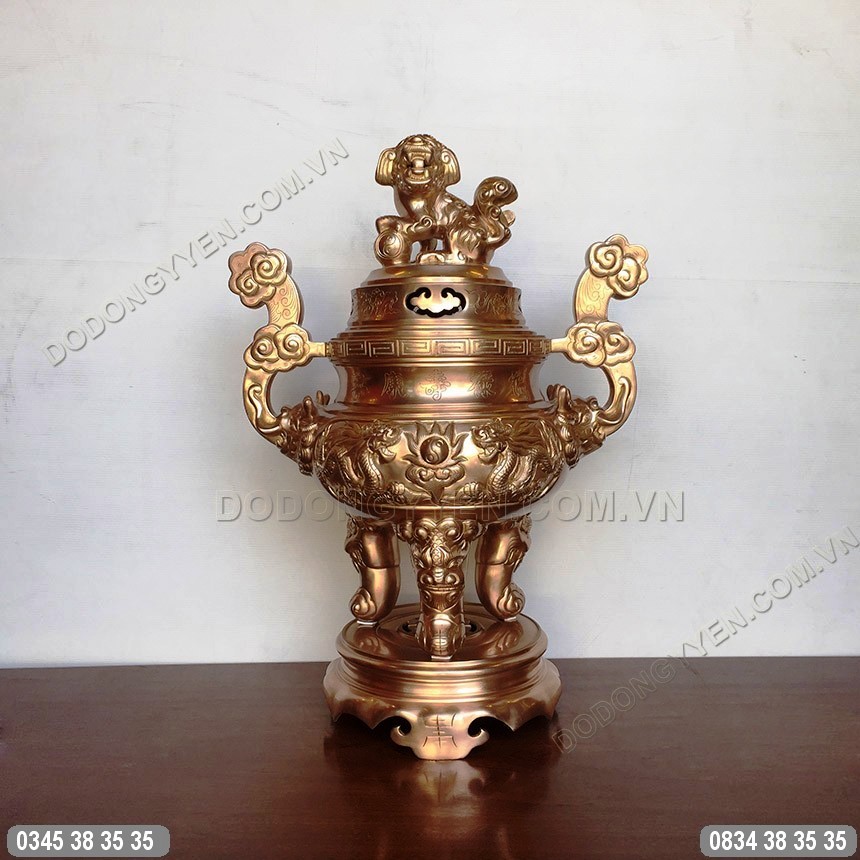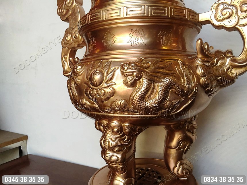 Đỉnh Đồng Đỏ Chạm Rồng Nổi Cao 65Cm