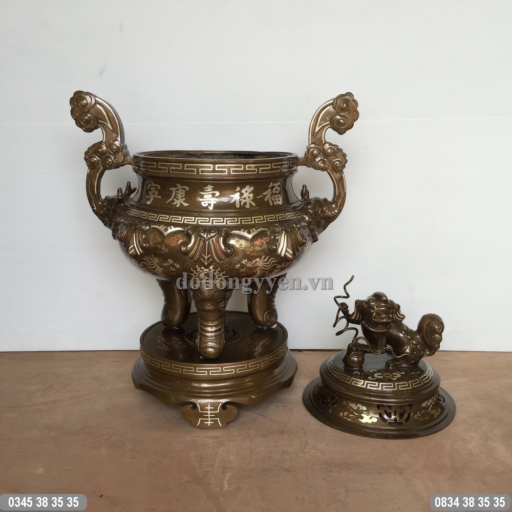 Đỉnh Đồng Khảm Tam Khí Cao 70Cm