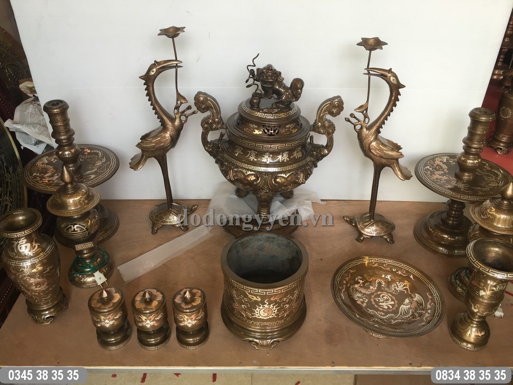 Bộ đồ thờ cúng đầy đủ, thích hợp với ban thờ gia tiên có kích thước lớn