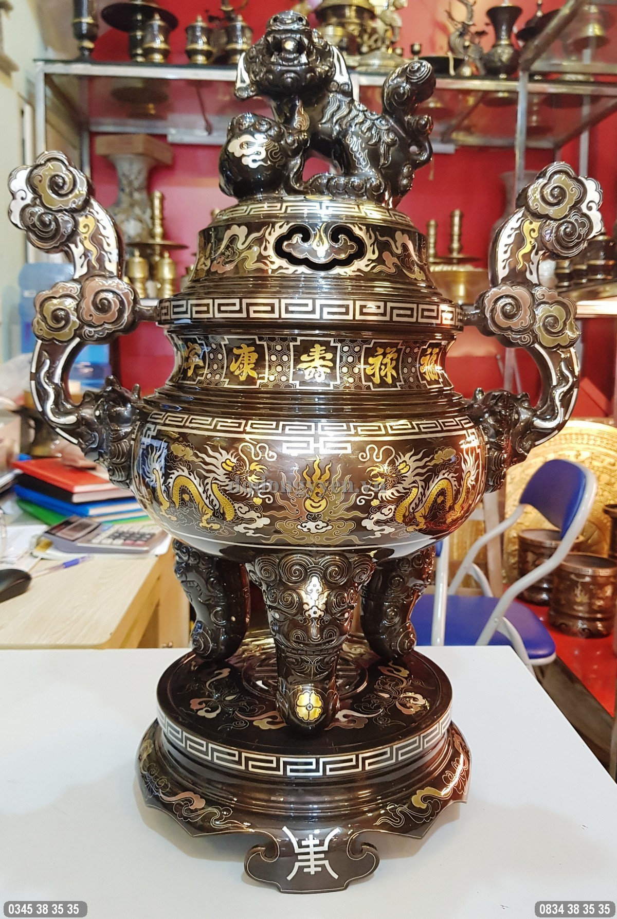 Đỉnh Đồng Song Long Khảm Ngũ Sắc 61Cm
