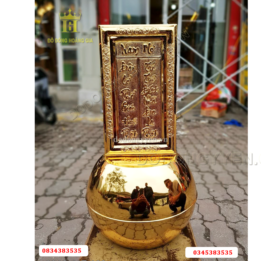 + Chất liệu: Phần trên Đồng vàng tấm 8 rem phần dưới đồng vàng đúc.