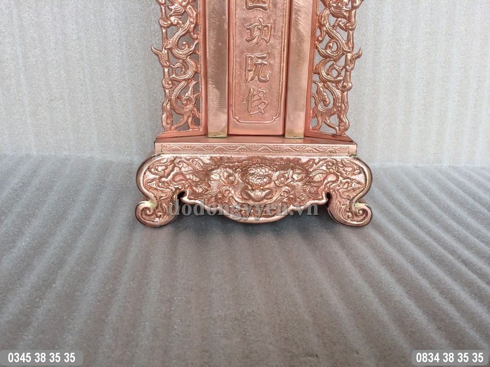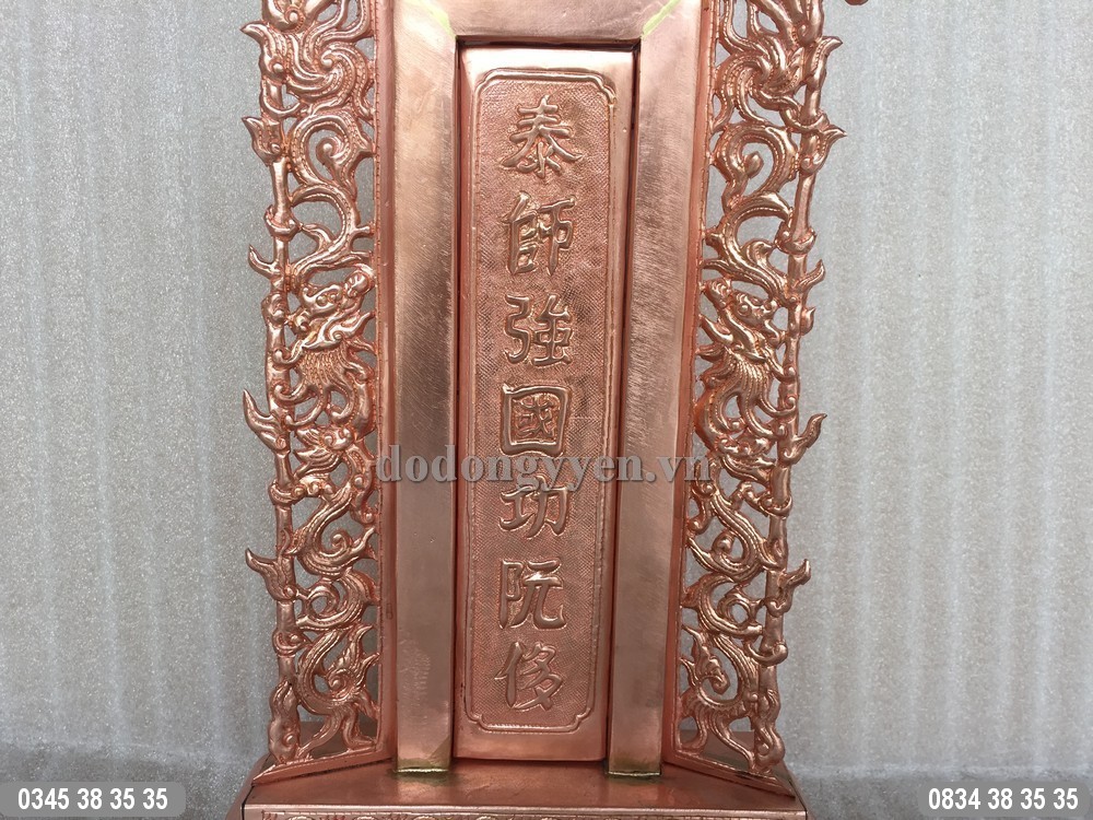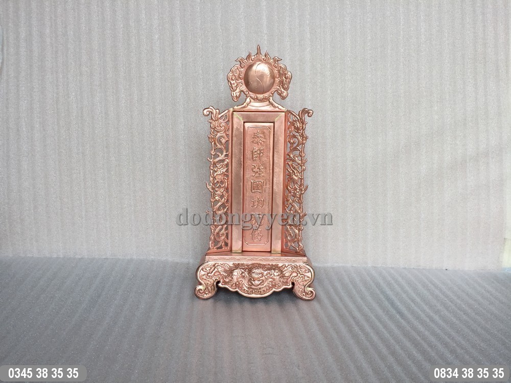 Cơ sở đúc gò đồng Cường Thịnh nhận đặt làm bài vị thờ cúng tổ tiên bằng đồng, hàng làm dày dặn, độ dày 10 rem thúc gò tinh xảo và sắc nét. Chạm khắc chữ theo yêu cầu