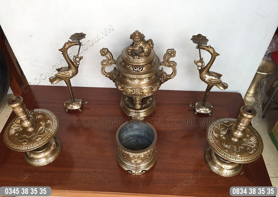 Bộ Đồ Thờ Bằng Đồng Khảm Tam Khí 42Cm của Đồ Đồng Cường Thịnh được đúc hoàn toàn thủ công từ đồng đỏ nguyên chất, bên ngoài khảm tam khí vô cùng đẹp và chắc chắn. Không chỉ mang lại vẻ đẹp, bộ đồ thờ còn giúp thể hiện tấm lòng hiếu kính của gia chủ.