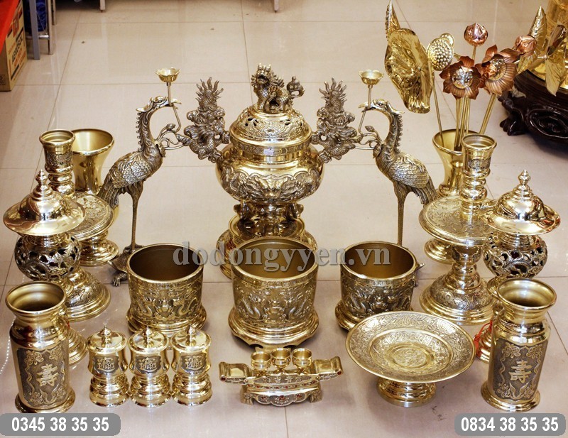 BỘ ĐỒ THỜ CÚNG GIA TIÊN BẰNG ĐỒNG DAPHA | ĐỒ ĐỒNG Ý YÊN