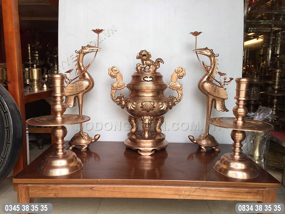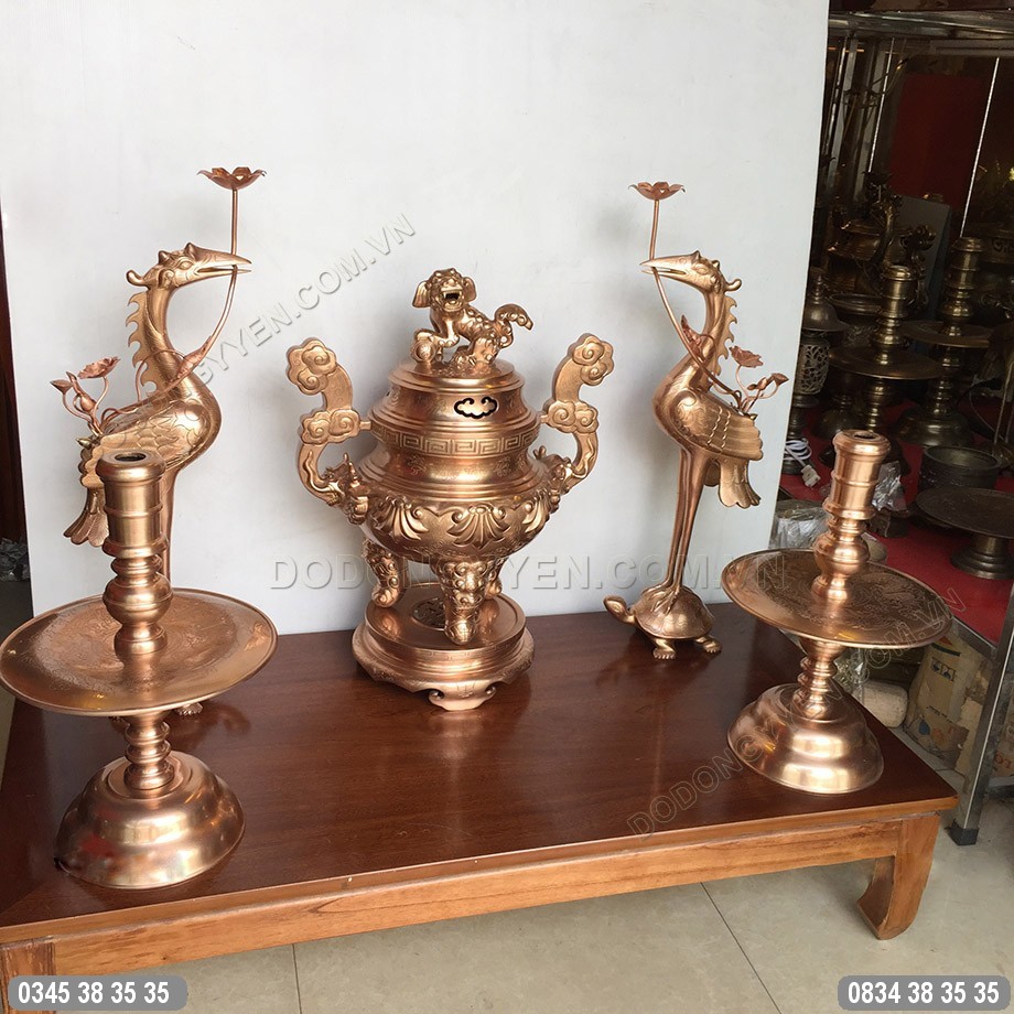 Bộ Đồ Thờ Ngũ Sự Bằng Đồng Nồi 61Cm