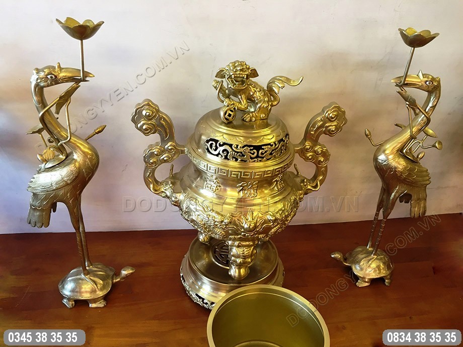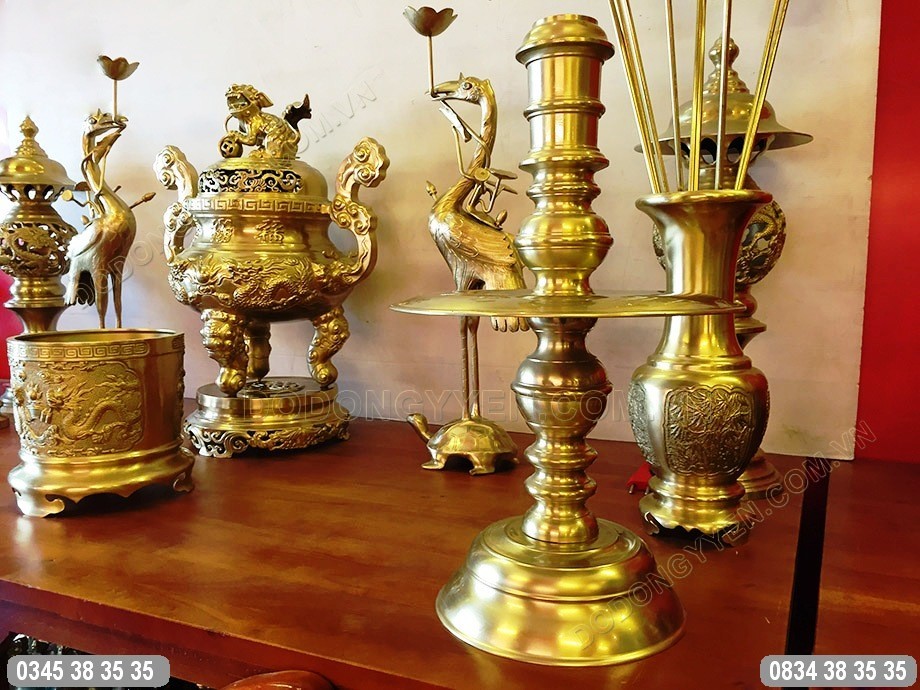 Bộ Đồ Thờ Rồng Phượng Đồng Vàng 55Cm