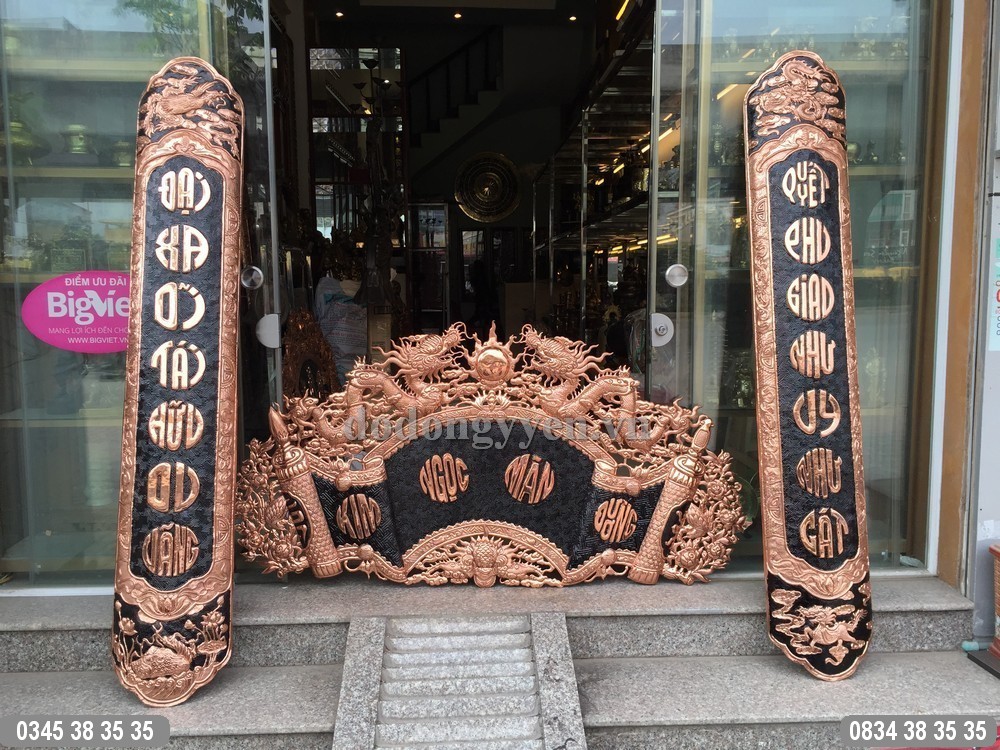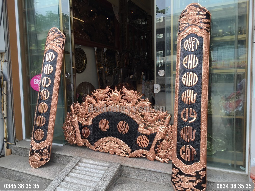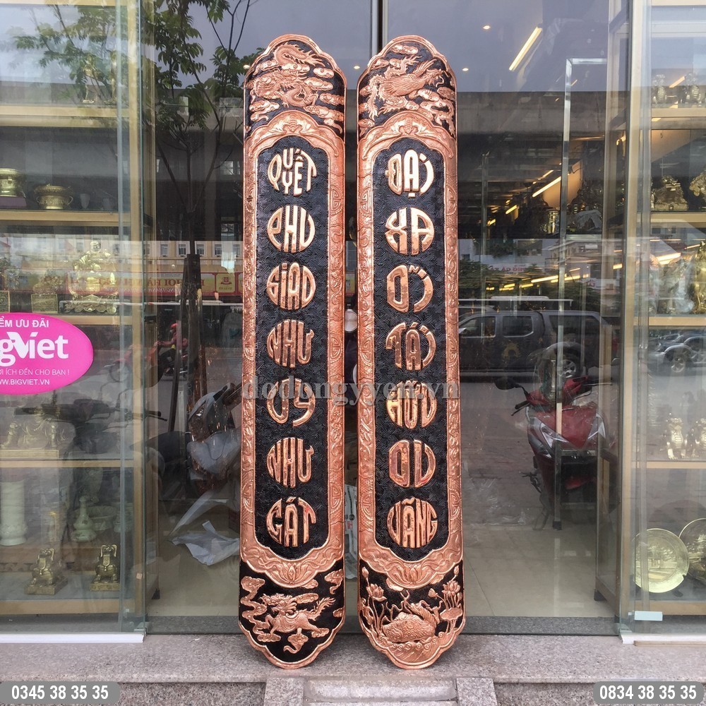 Bộ Cuốn Thư Câu Đối của Đồ Đồng Cường Thịnh được gò chạm thủ công bằng đồng đỏ nguyên tấm dầy dặn, cầu kì và công phu. Từng đường nét trên bộ cuốn thư câu đối được bàn tay tài hoa của những người thợ lành nghề chăm chút, gò chạm rất tinh xảo. Bộ cuốn thư câu đối được làm theo yêu cầu của khách hàng. Bộ Cuốn Thư Câu Đối được viết theo kiểu chữ triện.