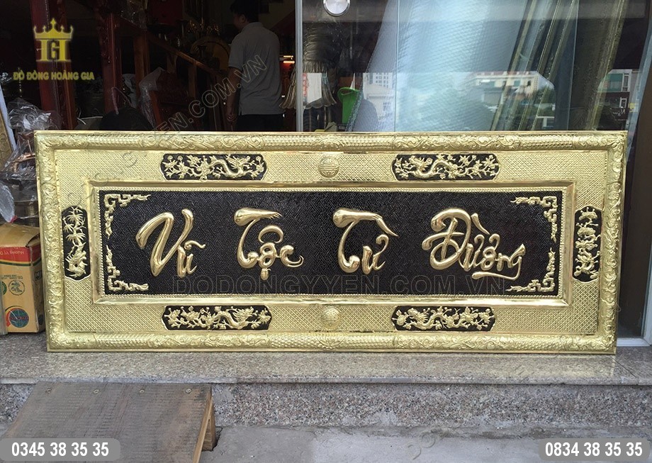 Bức đại tự cho nhà thờ họ Vũ của Đồ Đồng Cường Thịnh được chạm thúc vô cùng đẹp trên đồng vàng nguyên tấm, khung liền đồng vô cùng chắc chắn.
