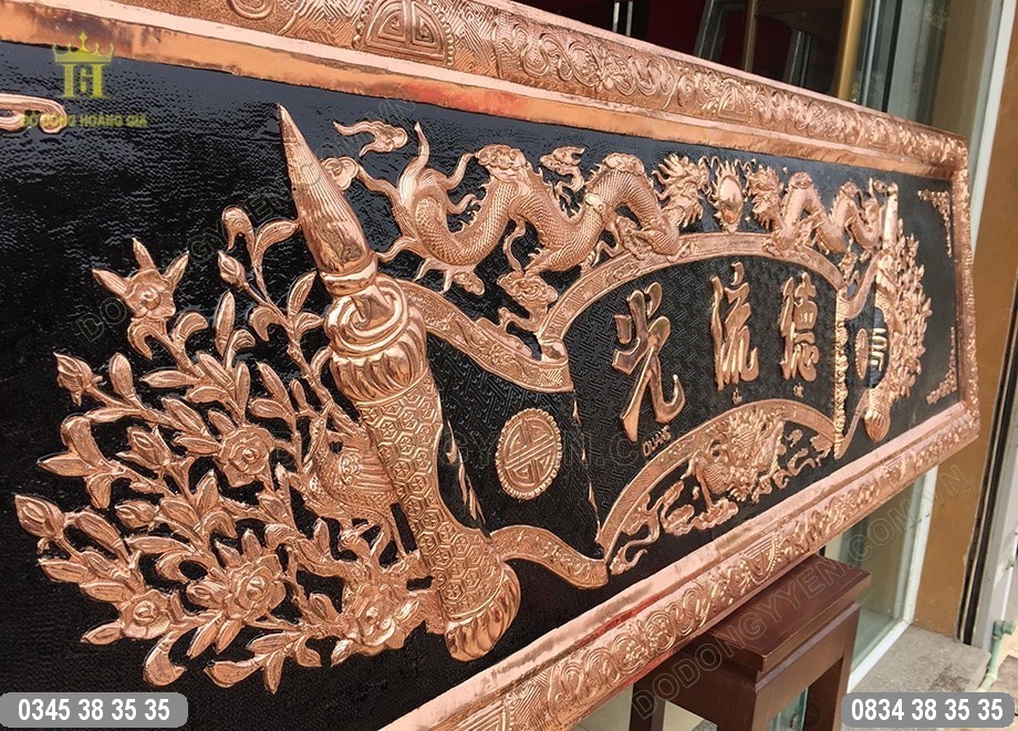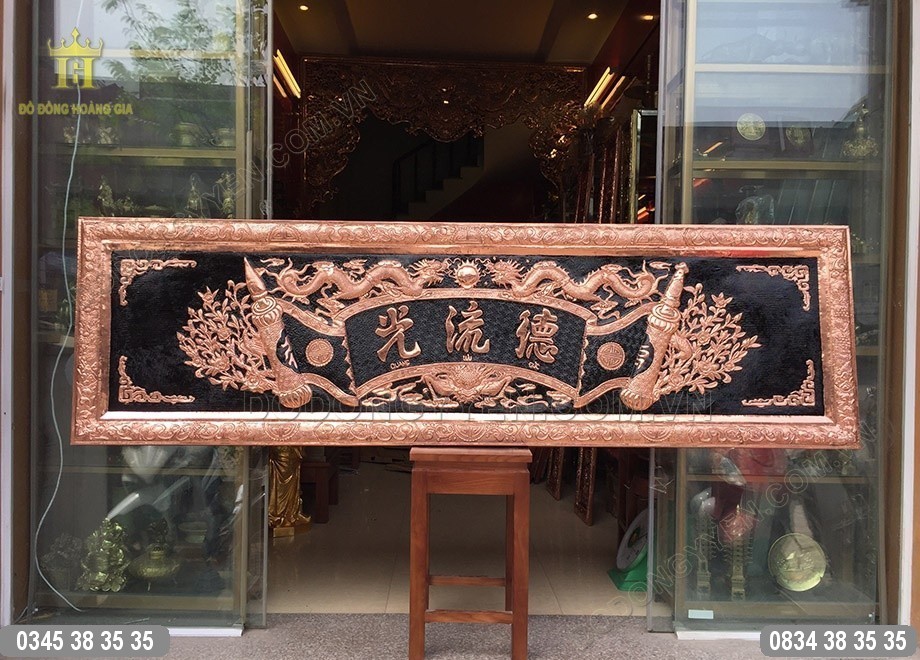 Bức Hoành Phi chạm chữ Hán Việt Đức Lưu Quang của Đồ Đồng Cường Thịnh được chạm thúc vô đẹp và sắc nét bằng đồng đỏ nguyên tấm tại làng nghề đồ đồng Ý Yên - Nam Định.