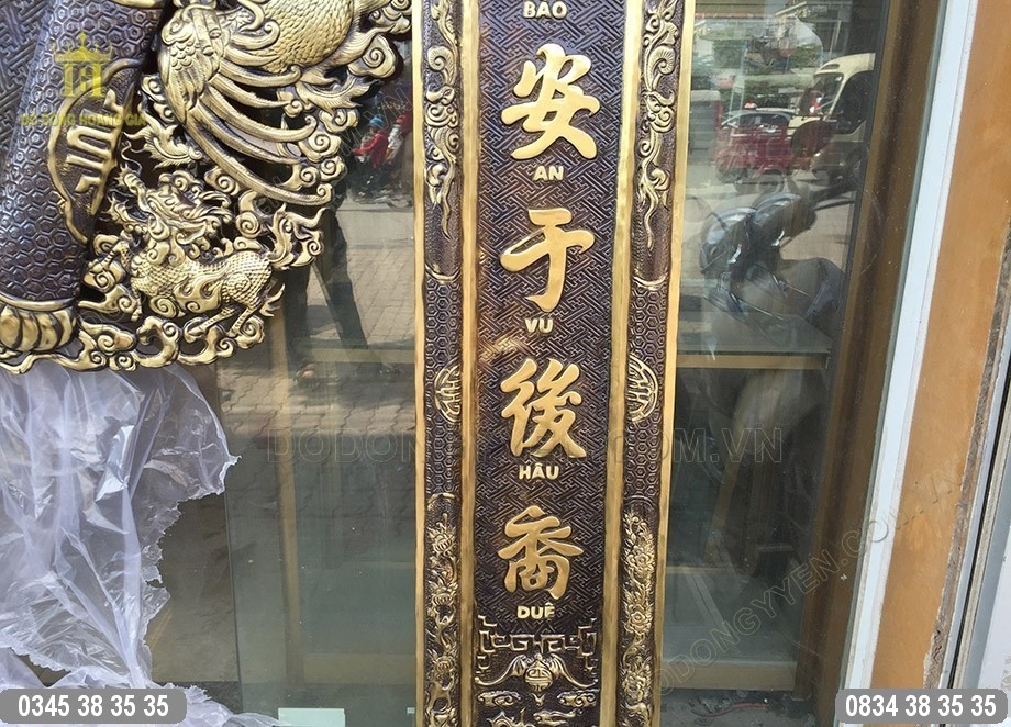 Bộ Cuốn Thư Câu Đối Đồng Hun Giả Cổ của Đồ Đồng Cường Thịnh được chạm thúc hoàn toàn thủ công trên tấm đồng dày 8 rem, bề mặt hun giả cổ vô cùng đẹp và sắc nét.