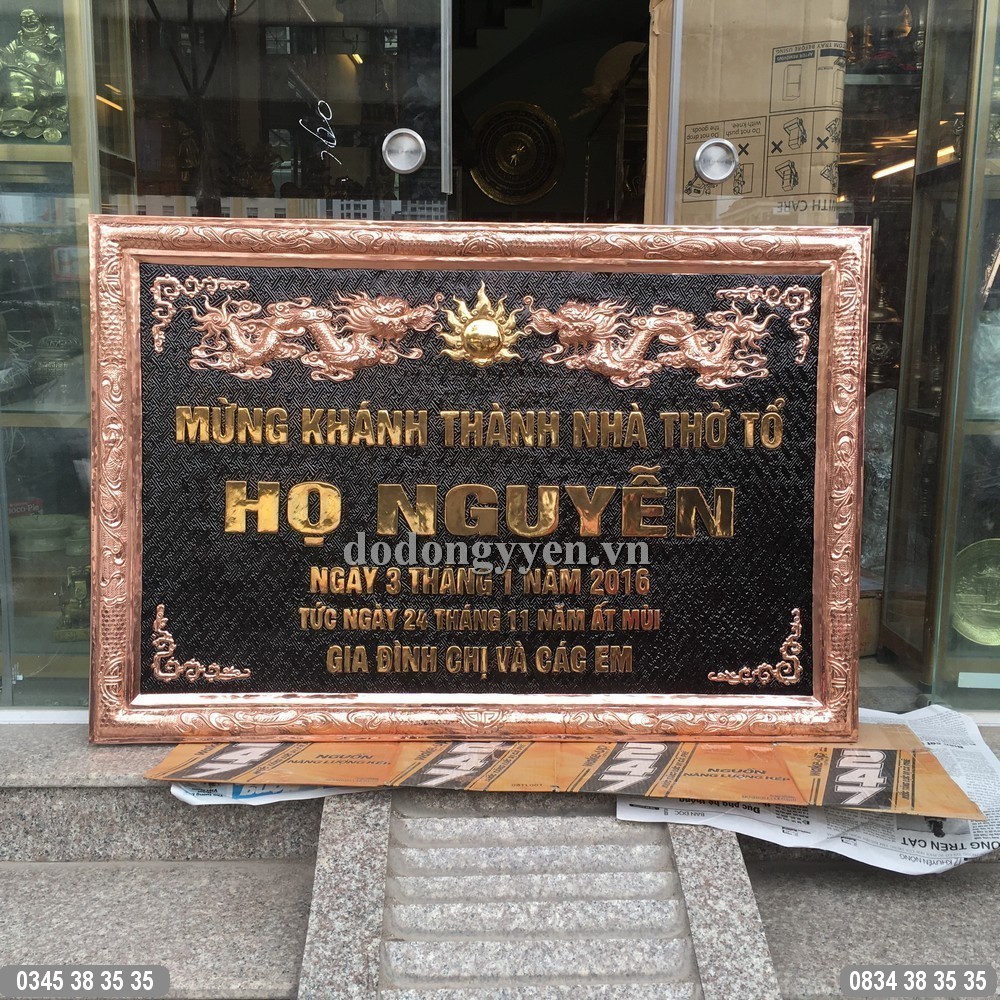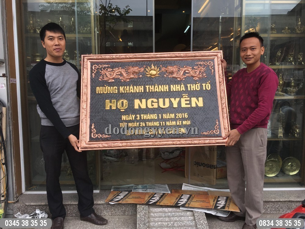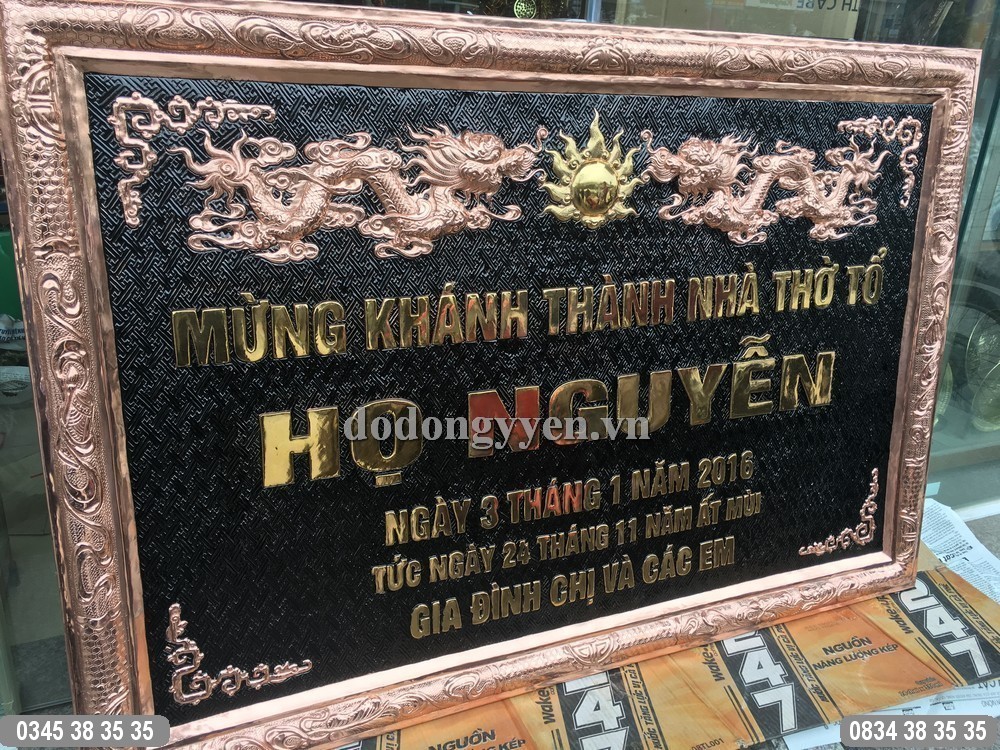 Bức Hoành Phi Mừng Khánh thành Nhà Thờ Tổ của Đồ Đồng Cường Thịnh được chạm thúc hoàn toàn thủ công bằng đồng nguyên tấm vô cùng dày dặn và chắc chắn. Vật phẩm giúp đem lại vẻ đẹp cho không gian thờ nhà gia chủ.