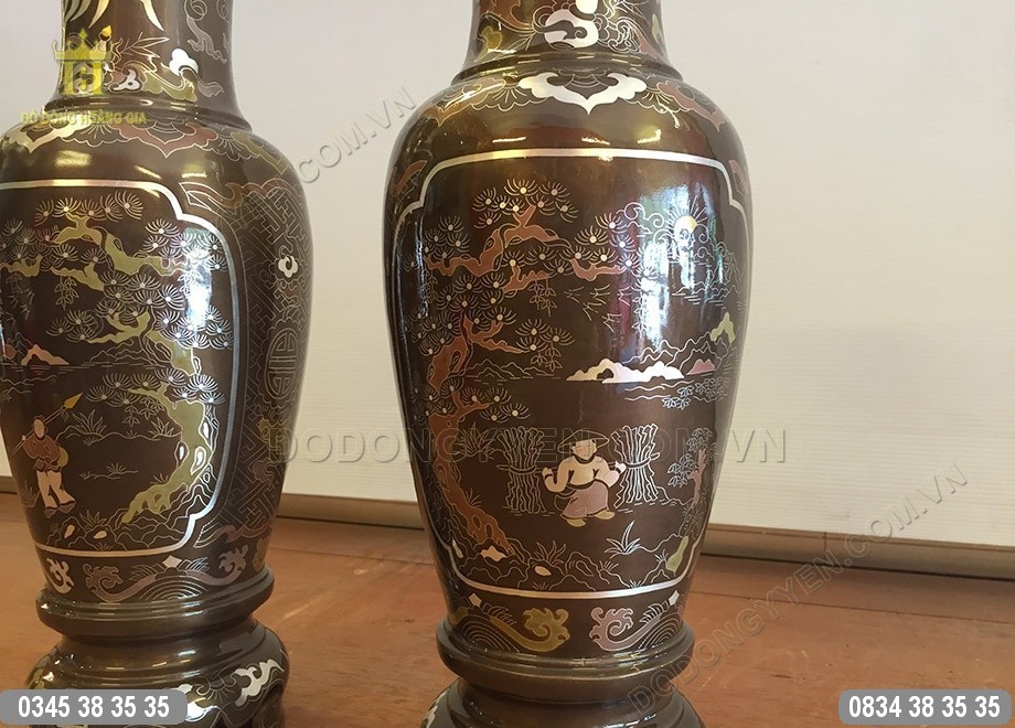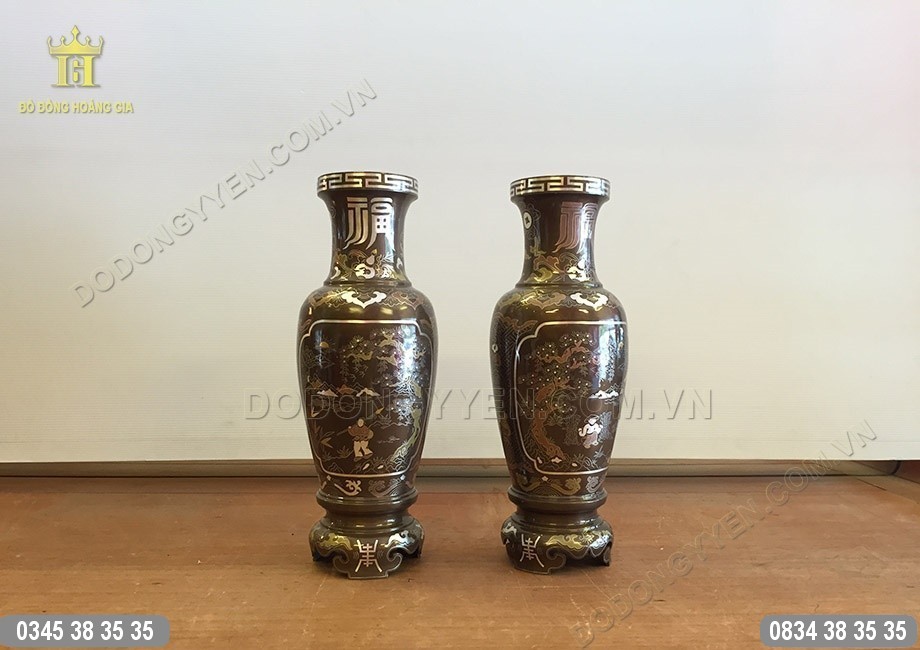 Đôi lọ hoa bằng đồng khảm ngũ sắc