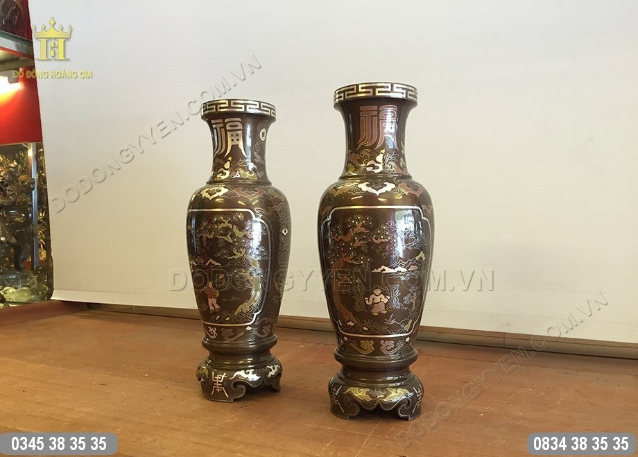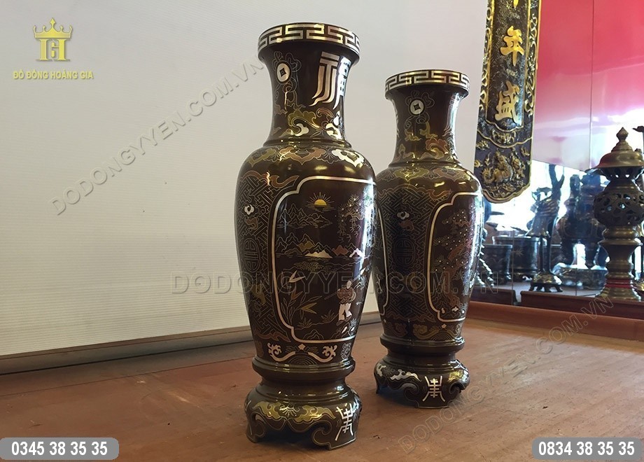 Đôi lọ hoa bằng đồng khảm ngũ sắc của Đồ Đồng Cường Thịnh là vật phẩm vô cùng quan trọng trên ban thờ gia tiên, giúp thể hiện gia thế gia đình gia chủ.