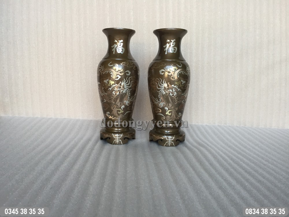 Lọ Hoa Bằng Đồng Rồng Phượng khảm tam khí cao 36cm