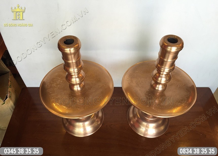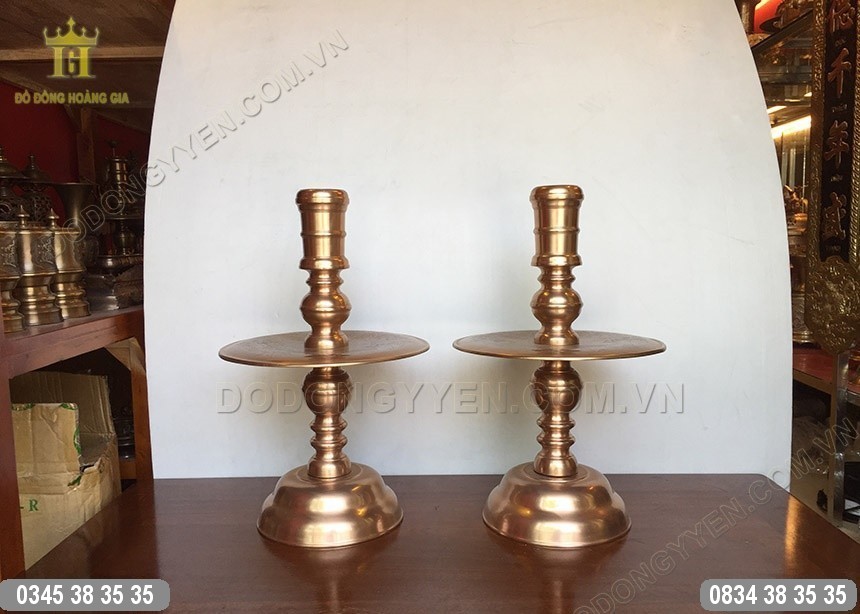 Đôi Chân Nến thờ đúc bằng đồng đỏ của Đồ Đồng Cường Thịnh được đúc hoàn toàn thủ công bằng đồng đỏ nguyên chất vô cùng đẹp và sắc nét, tại làng nghề đồ đồng Ý Yên - Nam Định.