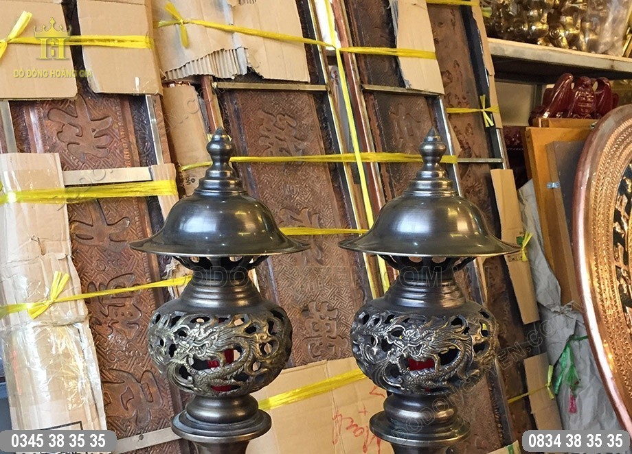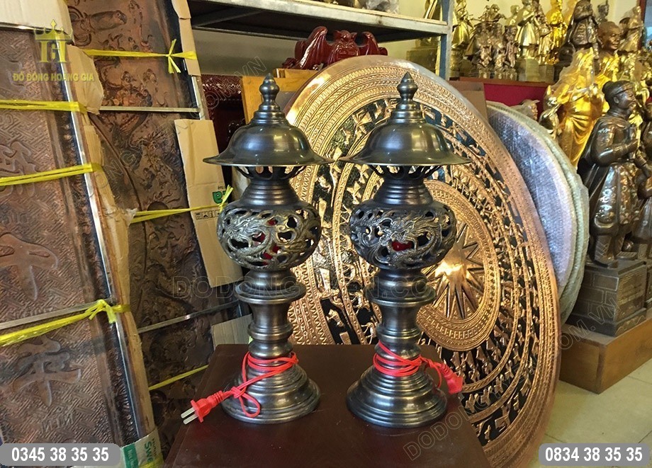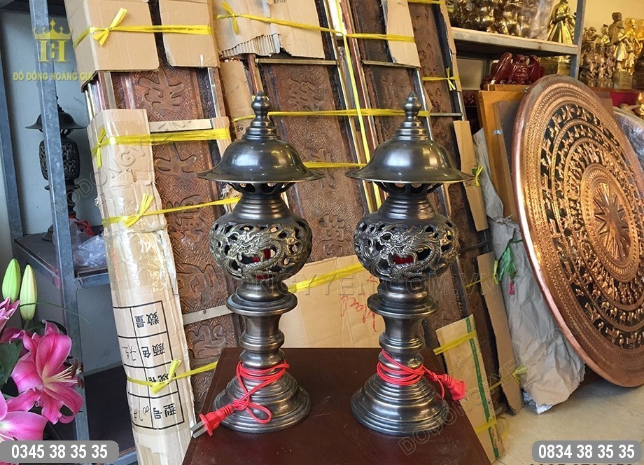 Đèn đồng thờ cúng gia tiên mẫu rồng phượng