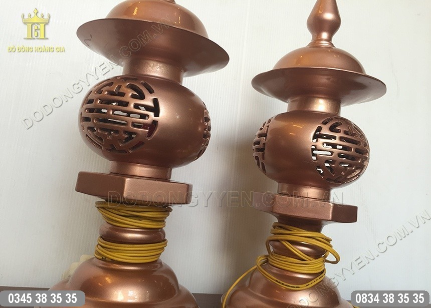 Đôi đèn thờ bằng đồng đỏ đúc mộc