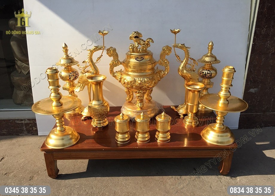 Bộ đồ thờ cúng bằng đồng dát vàng 9999 cao cấp