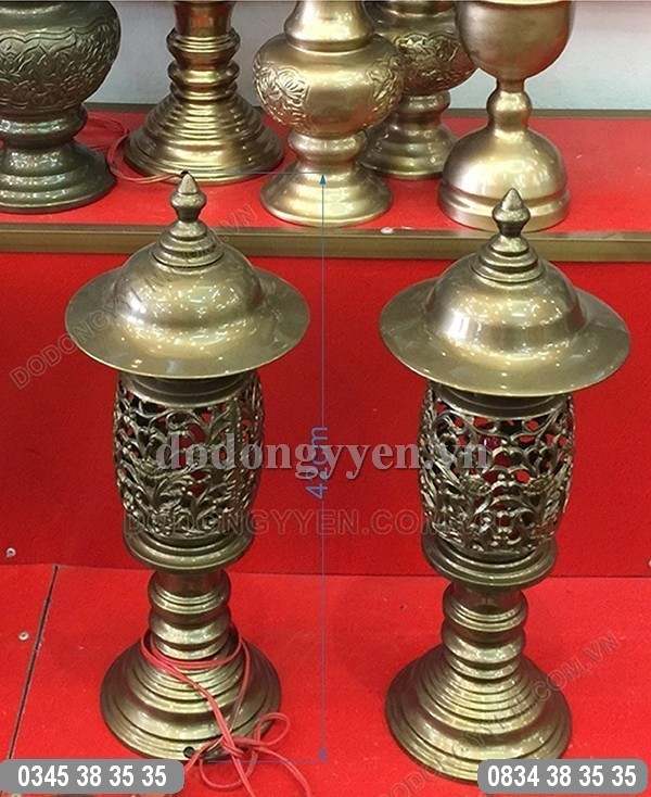 Đôi đèn thờ được đúc bằng nguyên liệu đồng vàng