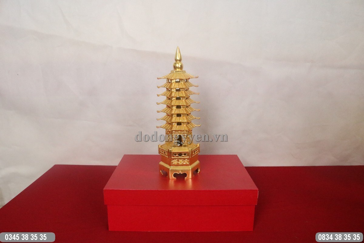 Kích cỡ: cao 18cm, 26cm, 30cm gồm loại 7 tầng hoặc 9 tầng (Nhận đúc quà tặng bằng đồng theo mẫu mã, kích cỡ phù hợp với yêu cầu của quý khách hàng)
