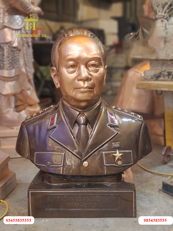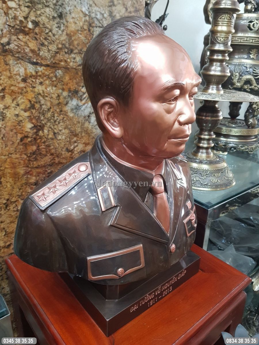 Quy cách: Tượng Bác Giáp được chính các nghệ nhân làng nghề đúc đồng Ý Yên - Nam Định chạm hoàn toàn thủ công bằng tay từ nguyên liệu đồng. Từng nét trên gương mặt được tại hình theo một tỷ lệ chuẩn nhất định.