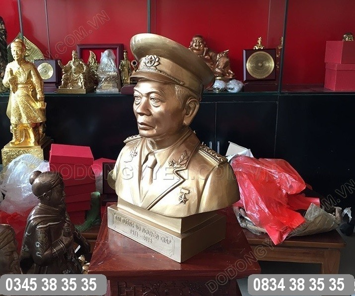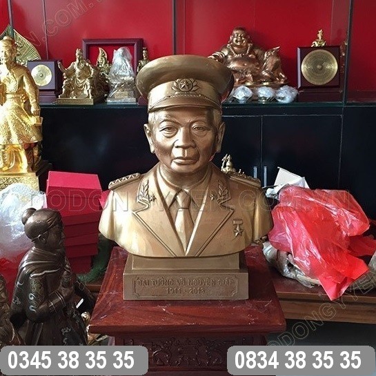 Cơ sở sản xuất chúng tôi chuyên đúc tượng đồng đại tướng Võ Nguyên Giáp với nhiều kích thước, phong thái khác nhau. Các kích thước tượng đại tướng Võ Nguyên Giáp bằng đồng tham khảo: 20cm, 22cm, 30cm, 42cm, 55cm, 58cm... Ngoài ra cơ sở đúc đồng chúng tôi nhận theo yêu cầu của Khách hàng.