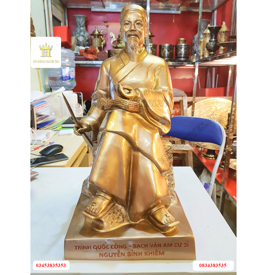 Tượng Đồng Đỏ Nguyễn Bỉnh Khiêm Ngồi 51Cm