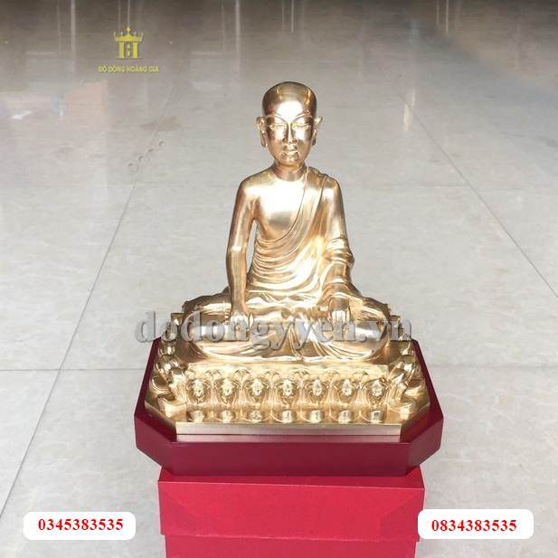 Tượng đồng Phật Hoàng Trần Nhân Tông được đúc theo mẫu chuẩn với đường nét tinh xảo và mềm mại theo công nghệ đúc chân không. Tượng có chiều cao 20cm và được đúc bằng đồng thau nguyên khối, nguyên chất. Dáng tượng ngồi thiền trên đài sen ba lớp. Khuôn mặt Ngài phúc hậu với đôi mắt hiền từ đang hơi nhìn xuống dưới. Đôi tai vua Trần Nhân Tông được tạo hình to, dày, và dài của nhà Phật. Ngài mặc áo của dòng tiểu thừa được tạo hình mềm mại, eo thon, khuôn mặt hiền từ, thoát tục.