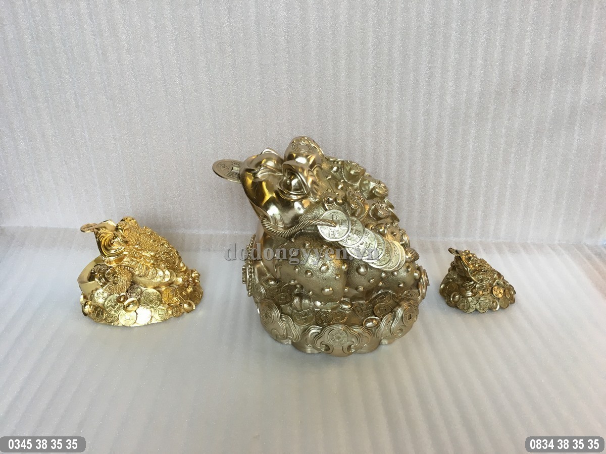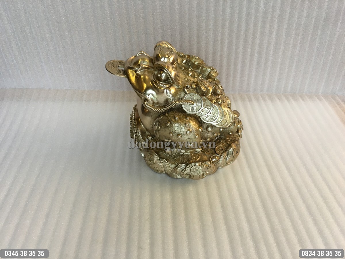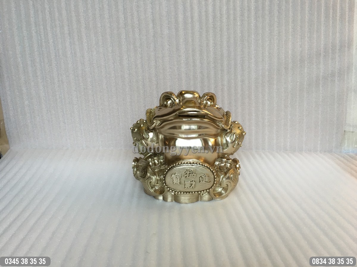 Cóc Ba Chân được đúc bằng đồng nguyên chất cỡ lớn kích thước 28cm x 26cm x 24cm, đúc đồng Ý Yên