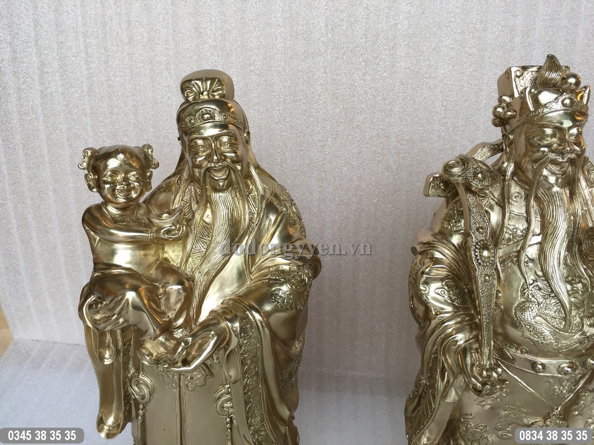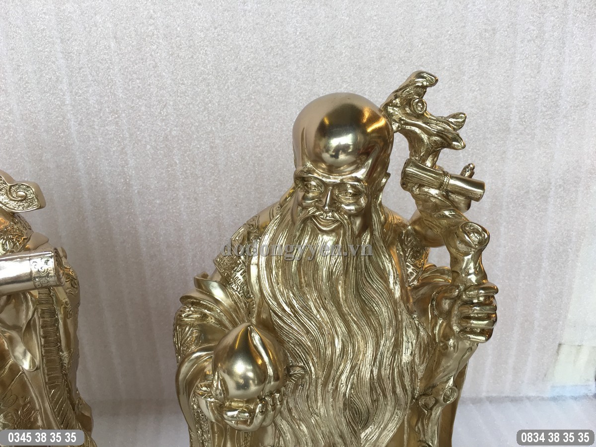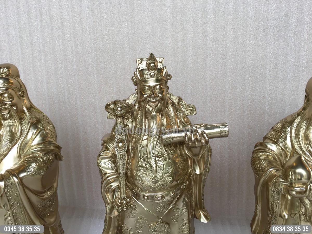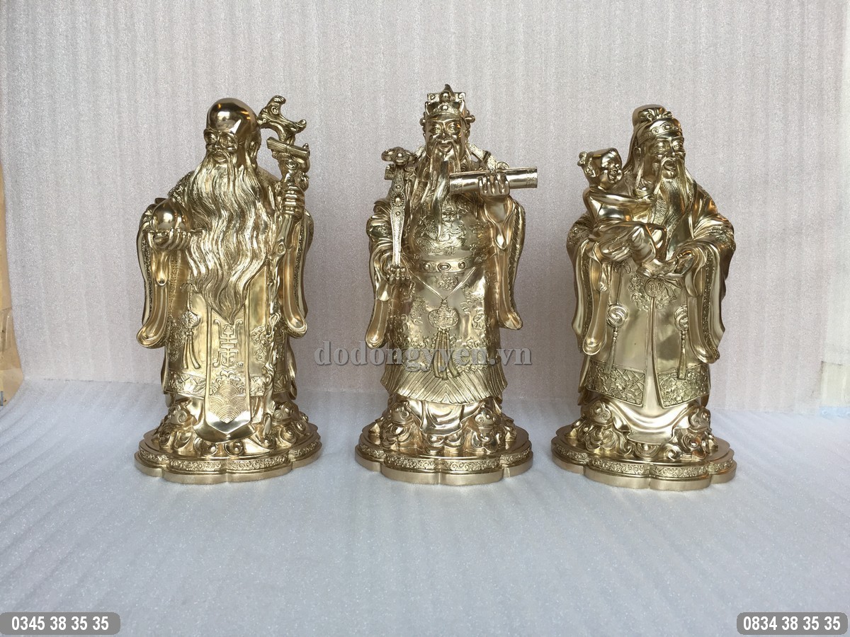 Bộ Tượng đồng 3 ông Tam Đa Phước Lộc Thọ được đúc bằng đồng nguyên chất, đúc nguyên khối, được tạo hình rất tinh xảo và công phu, sắc nét đến từng chi tiết nhỏ nhất. Bộ tượng có chiều cao 38cm, có màu sắc nguyên bản của đồng thau