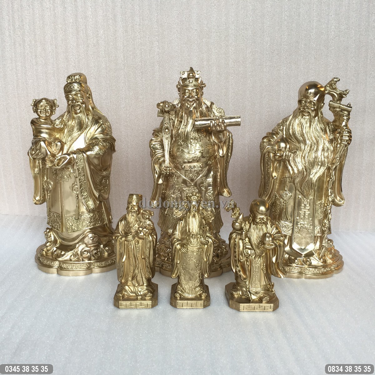 Các kích thước tượng Tam Đa bằng đồng tham khảo: 18cm, 38cm, 51cm, 62cm... ngoài ra Đồ đồng Cường Thịnh đúc tượng Tam Đa bằng đồng theo yêu cầu của Quý khách