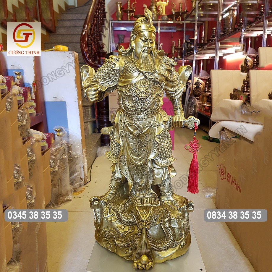 Tượng Quan Công Đứng Chống Đao Cầm Gươm Đồng Vàng 70Cm
