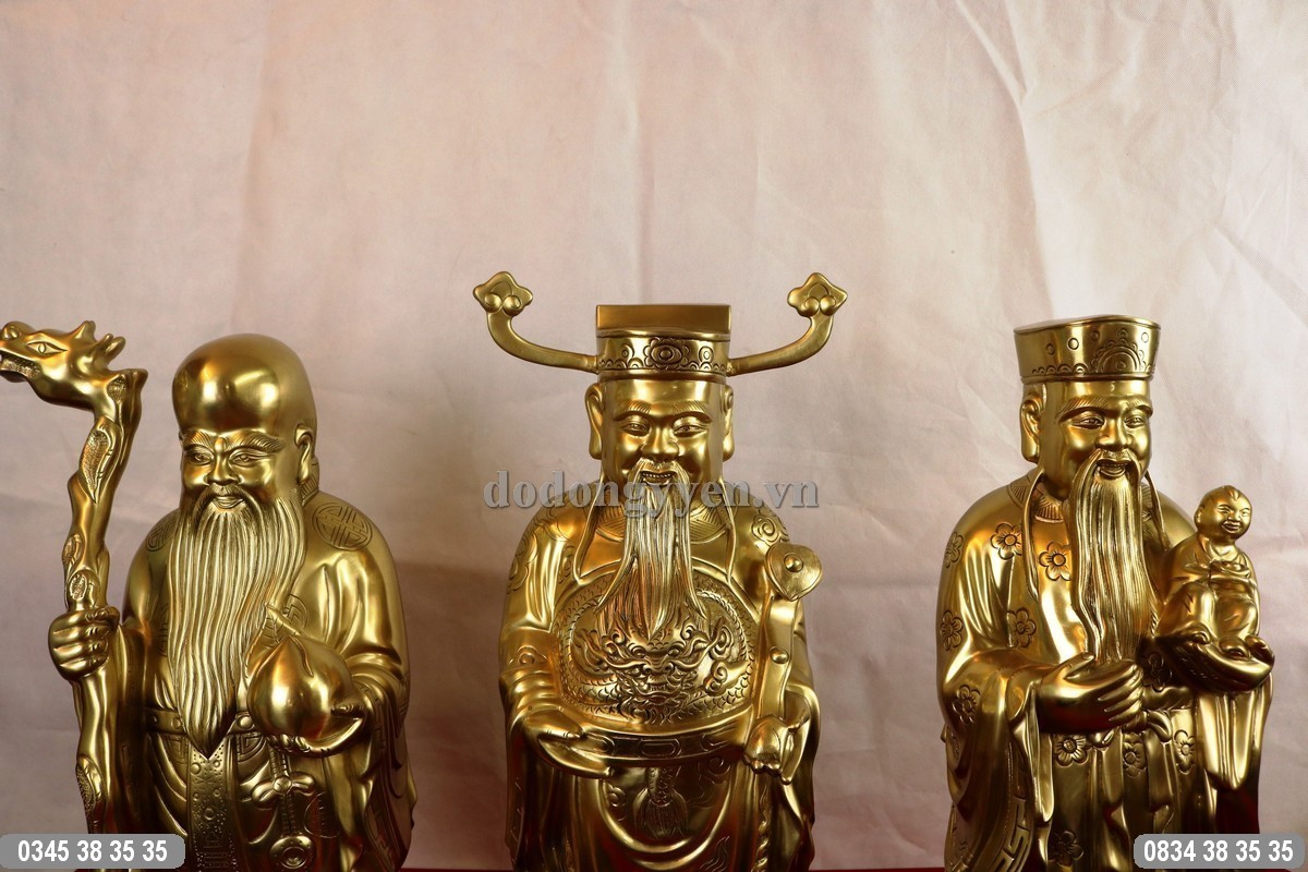Tượng Tam Đa Phúc Lộc Thọ bằng đồng vàng là biểu tượng tốt đẹp mà con người mong hướng tới, với hy vọng mang lại may mắn, tài lộc và sức khỏe.