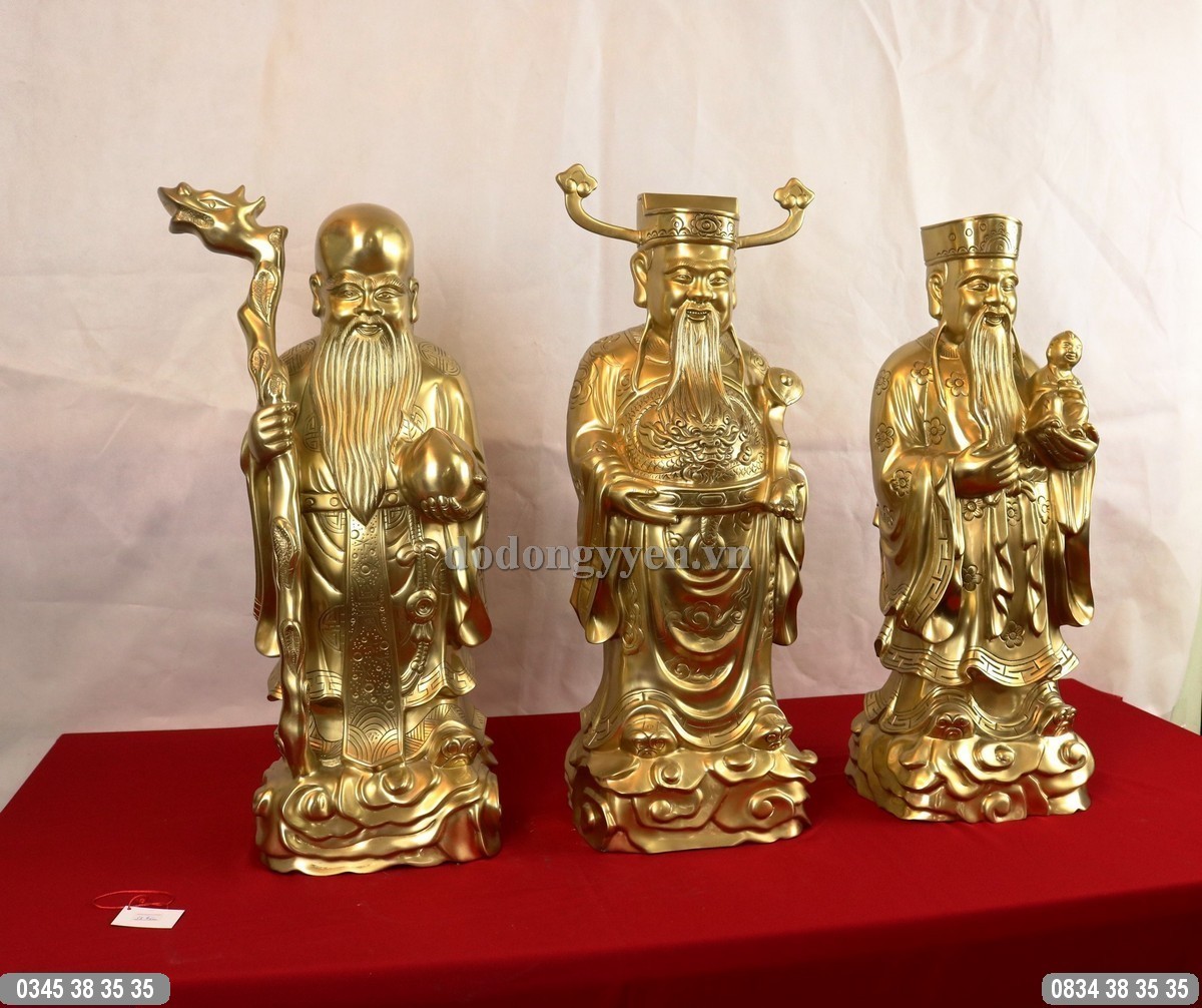 Quy cách: Tượng đồng Tam Đa 3 ông Phúc Lộc Thọ được đúc thủ công bằng đồng vàng, bề mặt đánh bóng gương rất đẹp.