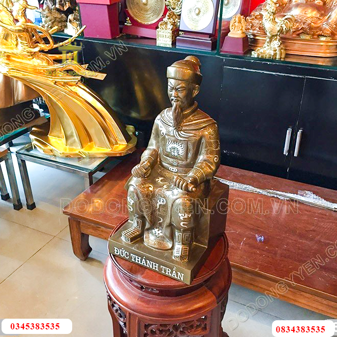 Mẫu tượng Trần Hưng Đạo ngồi oai phong, hùng dũng gương mặt ngài toát lên vẻ nghiêm nghị, với tay nghề chuyên môn cao những người thợ của chúng tôi đã tạo nên tác phẩm tượng xuất sắc nhất. Tượng được khách hàng của Đồ Đồng Hoàng Gia lựa chọn để đặt tại phòng khách tăng thêm vẻ sang trọng bậc nhất cho không gian nhà bạn.