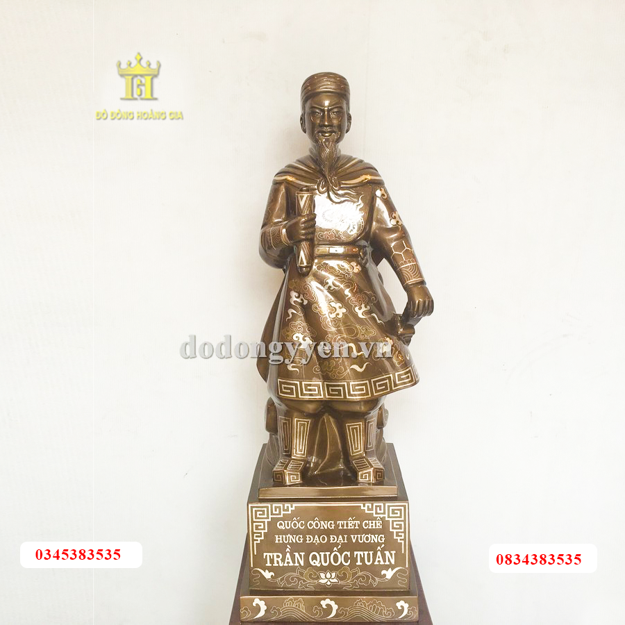 Tượng Hưng Đạo Đại Vương Trần Quốc Tuấn (Trần Hưng Đạo) cao 70cm của Đồ Đồng Hoàng Gia được đúc bằng nguyên liệu đồng đỏ nguyên chất, khảm tam khí vô cùng tinh xảo.